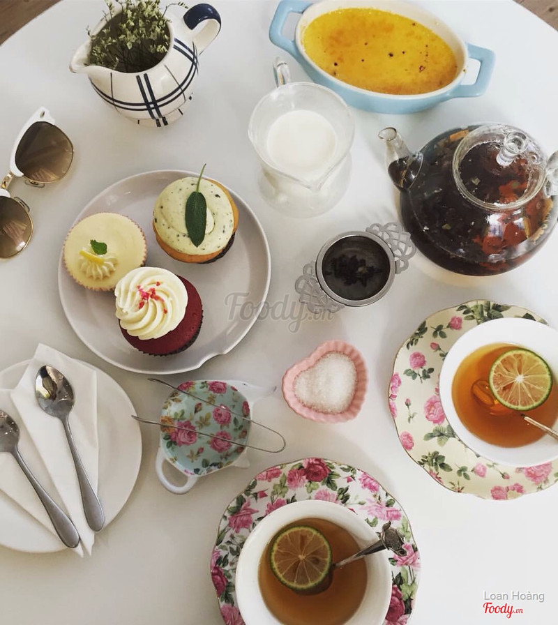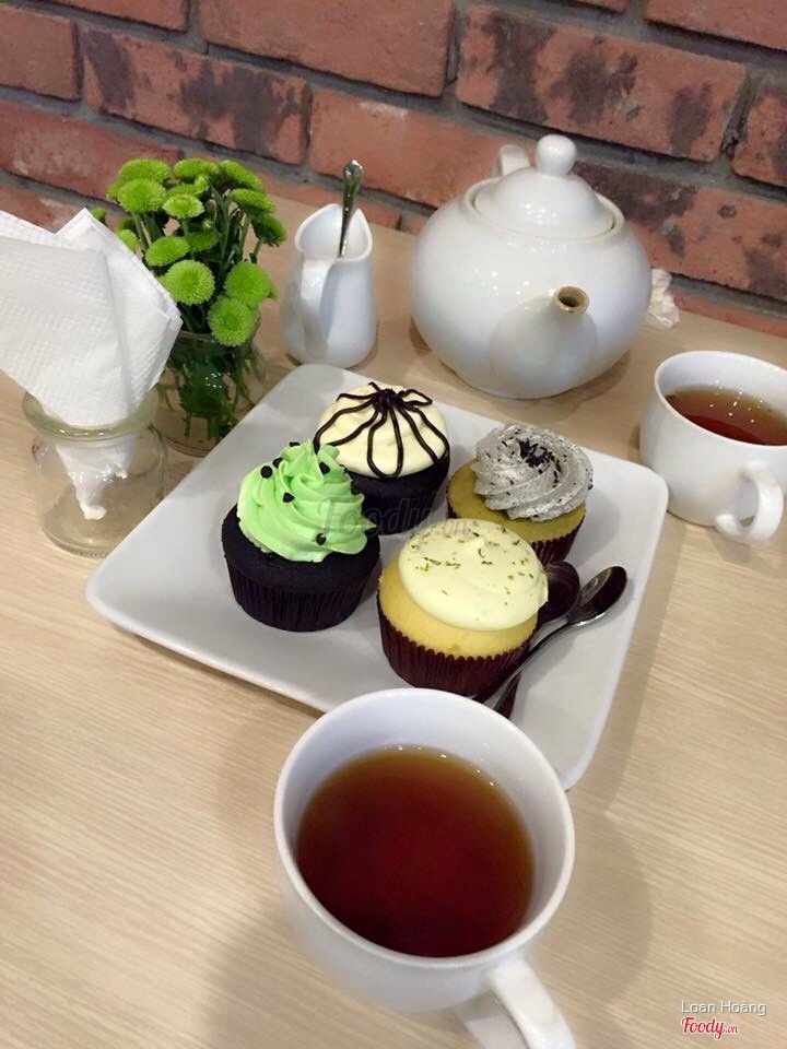 7.4Tea Room - Ngõ HuếThấy ecard foody nên qua nhưng thấy quán có set trà bánh hấp dẫn quá gọi luôn. Set 150k gồm 1 ấm trà refill nước thoải mái, 3 cupcake và 1 cream brulee sau 7pm hàng ngày. Cupcake key lime, matcha yougurt và coconut nhìn cũng xinh và ăn cũng ổn. Thích matcha yogurt nhất với cốt bánh mềm mịn, thơm ngon. Trà thơm dễ uống, refill 3 lần nước vẫn thơm :)) Không gian quán dễ thương dễ nhìn. Bộ cốc đĩa cũng xinh xắn, thích nhất cái thìa. Nhân viên dễ chịu, nhiệt tình, thích nhất bác trông xe ...Xem thêm