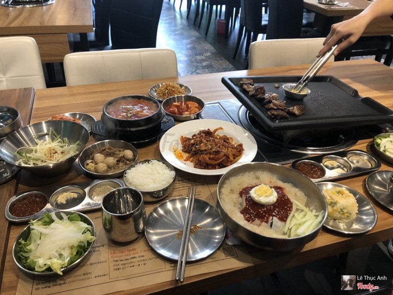 6.6Chảo gỗ thông mới lạ, quán nhỏ, đồ ăn okMới đi ăn tối chủ nhật kín bàn, quán nhỏ lắm nhé ít bàn, chủ yếu cư dân ăn thôi thì phải. 1. Đồ ăn: thịt tươi, mỗi đĩa khoảng 150g hơi ít, loại ướp thì hơi nhạt, sốt chấm không đặc sắc lắm, banchan hơi ít nhé mấy món kiểu canh hay trứng hấp muốn ăn thì gọi riêng trong menu chứ k free như mấy quán hàn khác. 2. Không gian: quán nhỏ, đc cái chảo rất lạ, đặt ngnghieng hẳn 1 bên nên mỡ chảy xuống khay cho đỡ ngấy, chảo bằng gỗ thông chứ k phải như chảo bt nha, đốt trên bếp ga, nhân viên có máy check nhiệt khi nào đủ độ nóng mới nướng thịt. Quán điều hòa nhưng nhỏ và đông nên nóng lắm nhé. 3. Nhân viên: thân thiện, chủ quán ng Hàn nhiệt tìn 4. Giá cả: thấy tầm 170-250k 1 đĩa thịt, gọi thêm bát canh bò bulgogi j ấy nhiều thịt bò ba chỉ là 200k (ăn ngọt kiểu vị bắp cải). Giá cũng tương đương mấy quán Hàn khác. Giá menu là có Vat rùi. Có mỗi sochu 100k thấy rẻ hơn quán khác thôi. Nói chung thấy ngồi ăn nóng quá nên cũng phải cân nhắc khi đi vào những ngày nóng. ...Xem thêm