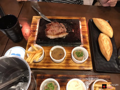 6.0Momoo Japanese Steak -***23***là toà nhà khá to nhưng quán không nằm trong mà nằm cạnh toà nhà nhé. Để dễ tìm mọi người đi thẳng lên trên tới số 21 sẽ thấy quán. Quán không rộng lắm, có vài bàn nhưng có ba tầng. Do là steak giá rẻ nên giờ ăn khá đông, mọi người muốn tránh thì có thể chịu khó lên tầng 3, hầu như ít người lên nên thoáng. Do giá rẻ nên chất lượng thịt cũng bình thường, hơi nhiều gân và không được mềm lắm. Bò cháy tỏi khá là mặn nhưng được cái mềm ăn ổn nhất. Mỳ ý ăn cũng tạm được. Giá khoảng 150k cả nước với steak thì không đắt nhưng hiện giờ cũng có khá nhiều quán có mức giá này. Do đó chất lượng đem lại không đủ sức cuốn để đi lần nữa. ...Xem thêm
