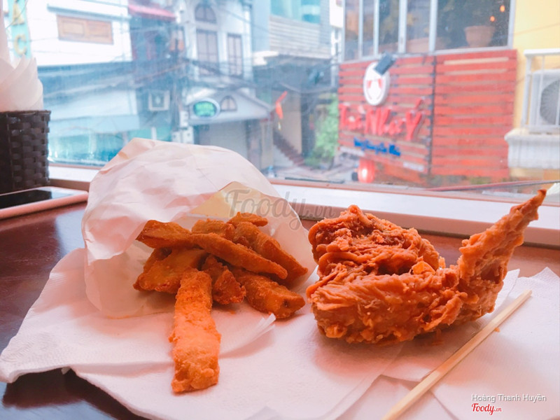 7.4Mr. Thịnh - Gà Rán & Khoai Lang Lắc - Thành Công185k cho 4 người ăn đây. Chỗ này ngay gần nhà nên mình mua về ăn thử hihi. Gọi đùi gà lớn là 30k/cái, 2 cánh gà, 1 suất gà viên và 1 khoai tây lắc. Đùi gà ở đây khá to, tẩm bột ăn rất giòn, cánh gà cũng vậy. Khoai tây lắc ở đây đẫm bột phô mai luôn ý miếng khoai cũng to, nói chung là mình khá ưng quán này, rẻ mà chất lượng cũng được. Ở đây k có chỗ ngồi nên chỉ là mua mang về được thôi nha ☺️ ...Xem thêm