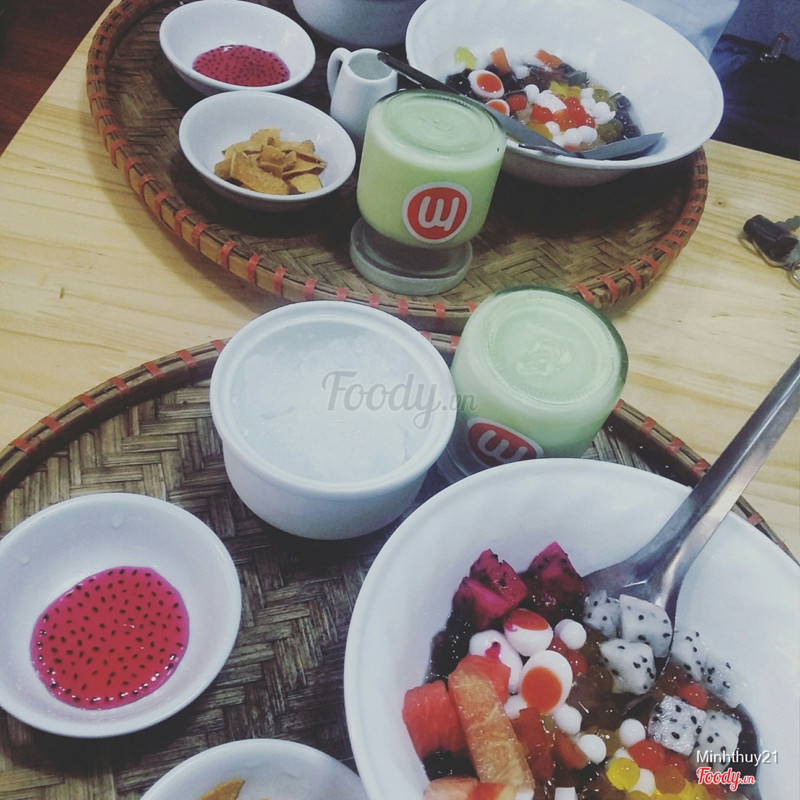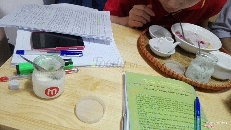 8.0Sữa chua ngonBiết quán lâu rồi mà mãi mới chịu đi thưởng thức Quán trong khu này hầu hết đều nhỏ nhỏ mà khách chủ yếu là học sinh cấp 3 nên phong cách teen lắm * Vị trí: mấy ngõ trong này thông nhau mà cũng rộng rãi, không khó tìm lắm, mà quán cũng sáng sủa dễ nhìn nữa * Không gian: như đã nói, quán hẹp thôi, nếu đi nhóm đông chắc tầm 20 người đổ lại thì được. Bàn ghế gỗ nhỏ xinh đúng phong cách học sinh, có cả bàn ngồi bệt nữa. Nói chung quán nhỏ xinh lắm :))) * Ấn tượng: chủ quán bị cuồng trung quốc thì phải, bật toàn nhạc hoa, tên mấy mẹt sữa chua ăn vặt thì đặt theo mấy loại rượu nổi tiếng (kiểu Nữ nhi hồng ý 😂😂😂). Nhìn cái này hơi bị hài. Cũng là 1 điểm gây ấn tượng * Nhân viên: trẻ, thân thiện, làm món này chờ thấy hơi lâu dù lúc đấy có mỗi mình, nếu đông chắc chờ lâu lắm * Đồ ăn: ở đây có cả đồ ăn vặt và đồ uống. Hôm đi chỉ thử mẹt sữa chua thôi, chắc hôm nào sẽ quay lại để thử đồ ăn. Hỏi ở quán loại nào best seller thì đc giới thiệu và thử ngay 2 loại: ngũ sắc và nữ nhi hồng. Món chủ đạo của mẹt này là caramen hoặc sữa chua (chọn 1 trong 2) với thạch. Được tự chọn vị, mà ở đây cái nào cũng nhiều vị lắm, nhìn menu hoa mắt k biết chọn cái nào. Ăn gì tớ cũng chọn bạc hà với trà xanh ý nên là chọn luôn 2 vị ấy. Sữa chua có vị ăn rất rõ mùi, khá là ngon nhé (tớ quên k chụp sữa chua vì để trong hộp riêng, chắc khi ăn úp ngược chung với đồ trong mẹt mà tớ k biết vẫn ăn riêng 🤣🤣🤣) Mà giá cả cũng phù hợp hs sv, sẽ còn quay lại ...Xem thêm
