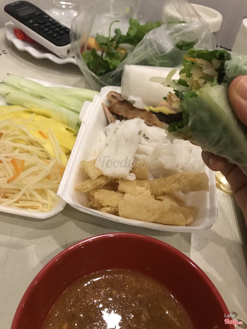 8.0Ngon & rẻMình lười đi nên đặt giao hàng, nhưng nhận được cũng khá nhanh. 1 suất chỉ có 25k mà khá nhiều & ăn đủ no cho 1 bữa trưa. 1 suất có 6 miếng nem nướng, nhiều rau & đồ cuốn kèm, nên 6 cuốn đều khá bự. Rau cũng tươi & bánh phở cuốn kèm mới, ko bị chua. Nước chấm thì bình thường thôi. Quán đóng hộp khá sạch sẽ, đầy đủ & cẩn thận, còn không quên gói kèm tương ớt cho những ai thích ăn cay. Với mức giá 25k thì không có gì để chê cả. Nếu bạn ăn ngay tại quán thì chắc miếng bánh tráng rán cuốn kèm sẽ giòn hơn. ...Xem thêm