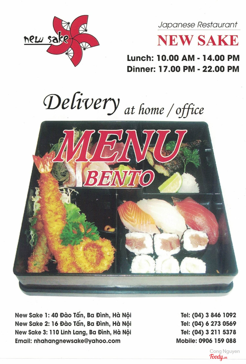 6.8rượu ngon, nặng và hơi đắtNhà hàng này có đến mấy cái cơ sở ở Hà Nội liền, nhưng chất lượng có vẻ không đồng đều lắm. Chỗ này là New sake 3 thì phải, ngoài các món như hai nhà hàng kia ra thì còn có thêm lẩu nướng không khói. Đồ ăn khá ngon và được chế biến, tẩm ướp rất vừa vặn. Đã đến đây thì phải làm mấy chén sake, rượu thơm nhưng hơi nặng, giá thì đắt. Mình chưa uống rượu này ở các chỗ khác nên cũng chưa biết so sánh ra sao. Mấy cô nhân viên cũng nhiệt tình với duyên dáng lắm ý. ...Xem thêm