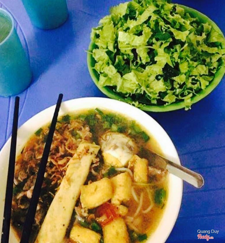 7.8Bún riêu các loạiQuán về muộn rồi (khoảng hơn 9h) mà vẫn có nhiều khách. Xe thì để loanh quanh cái đường ngõ đó. Quán có 2 tầng, tầng trên ngồi thoáng hơn, chứ ngồi tầng 1 về nhà quần áo mình ám đầy mùi bún riêu luôn. Đồ chỉ cần đọc 1 lần là chị ở quán nhớ, mọi lưu ý đều làm đúng luôn: ví dụ kiểu k mắm, k hành, k bò vv. Về chất lượng ổn, sợi bún tươi k bị chua, nước dùng thơm. Bát full topping thế kia có giá 48k bao gồm: chả bò, bò, đậu và trứng lộn ...Xem thêm