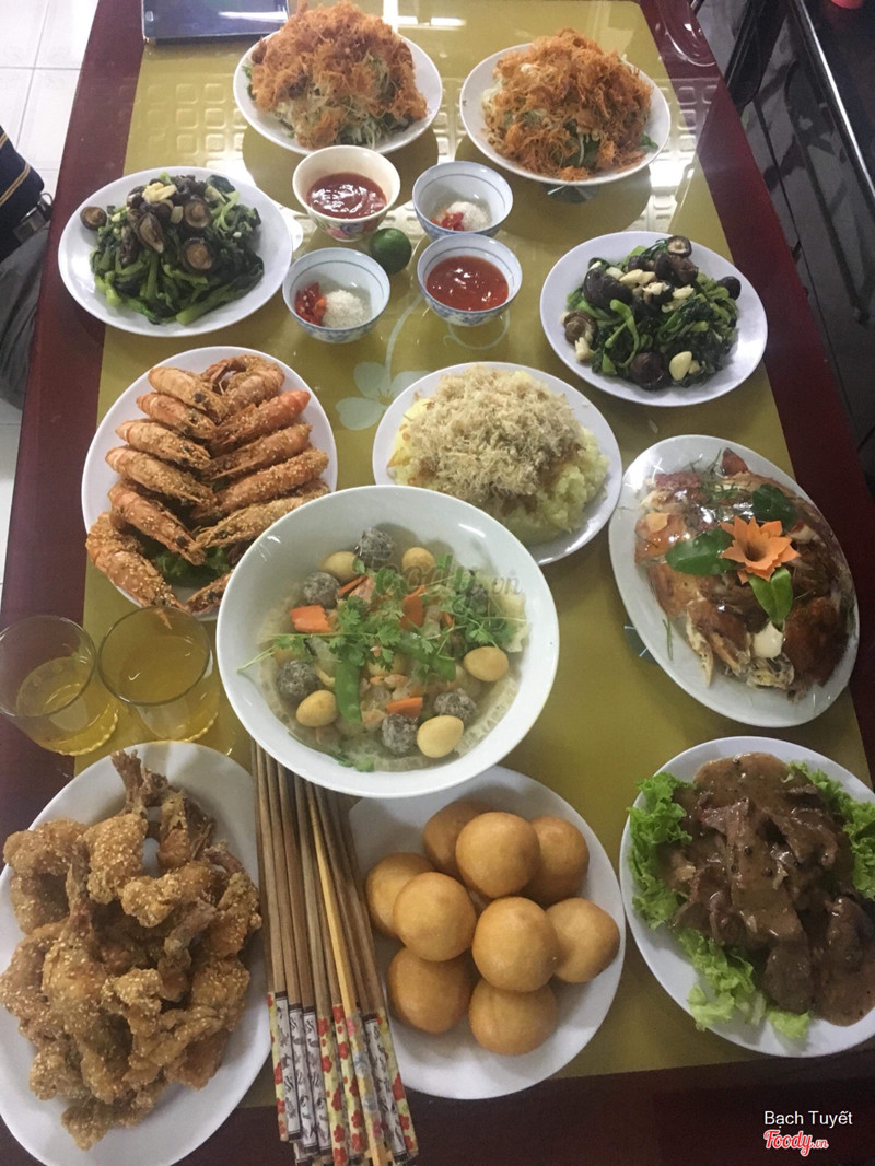 7.6Yummy! ❤️Trước h mẹ mình hay có nhà hàng nấu cỗ quen, nhưng đc giới thiệu nhà hàng này có dịch vụ làm cỗ về tận nhà (ship từ 3 mâm trở lên) nhé! ☺️ - Hôm đó nhà mình có giỗ bà nên đặt ở đây. Các món tùy ý họ đưa ra ấy. Có món đùi ếch chiên bơ, gà thì là gà nướng, tôm tẩm bọt chiên xù, thị bò xào tiêu ăn cùng với bánh bao và rau cải xào nấm ấy. Nộm cũng có rắc bò khô bên trên. Canh thì là canh trứng cút mọc vs bóng,... Tổng thế bữa ăn khá ngon, mọi người đều khen 👌🏻 - Mâm 6 người: 1.200k nhé, giá rất mềm, hợp lý ...Xem thêm