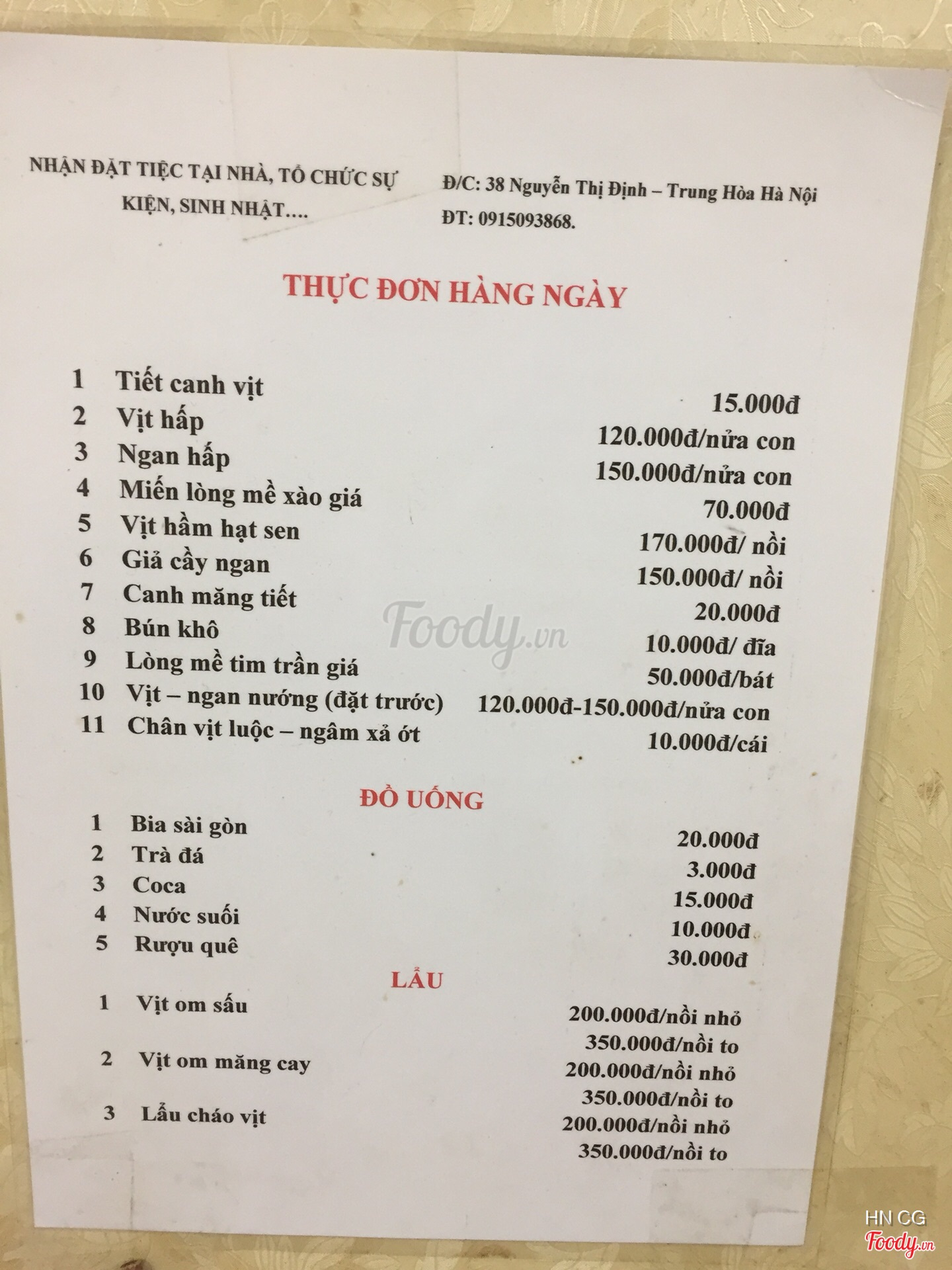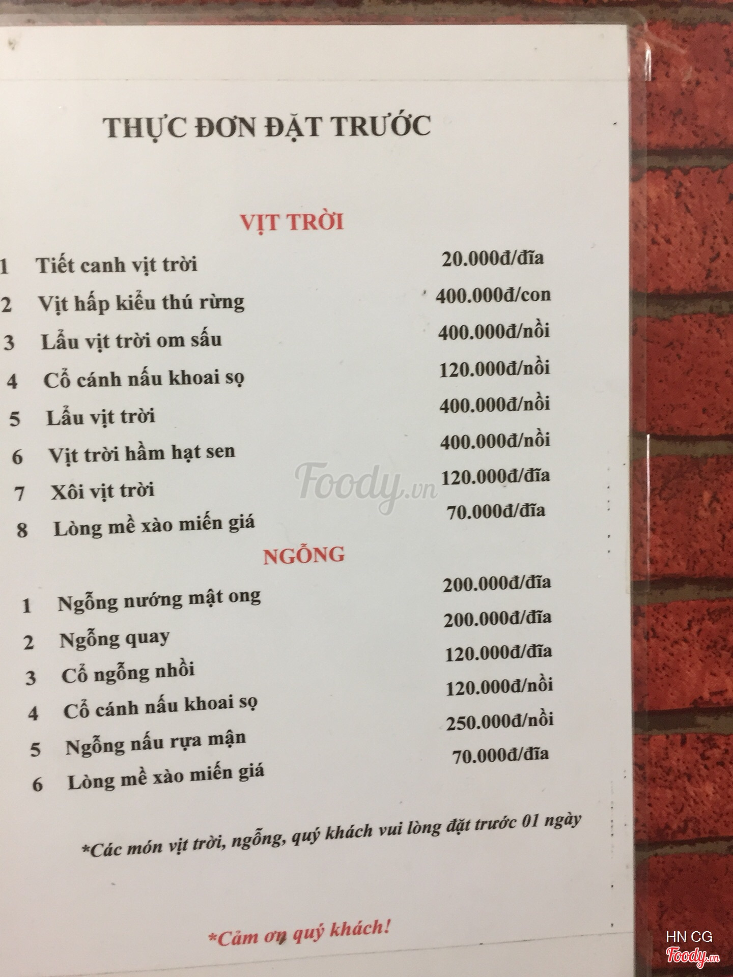 Ghi chú đặt bàn