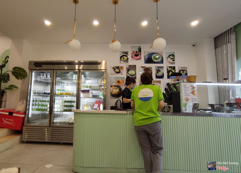 8.8Ngọc Thạch QuánTính ra tiệm chè ở Đặng Tất mà thấy bảo tiệm chuyển về địa chỉ này rồi, đến nơi thì lại thấy thành ra Ngọc Thạch Quán :))) Cũng không sao vì ăn ngon là được. Quán màu xanh lơ, cũng tương đối dễ nhận thấy, mỗi tội NTH đường 1 chiều mà quán lại bên tay trái đường nên dễ bỏ qua. Vỉa hè dựng xe thoải mái nhé, mình cũng thấy nhiều anh giao hàng lắm. Có menu làm thành phiếu ở ngay cửa quán, mọi người đánh dấu chọn đồ ở ngoài rồi đem phiếu vào cho nhân viên. Giá dao động từ 15-30k, nhìn chung giá rẻ và rất đa dạng phong phú món. Mình chọn chè lá nếp phô mai 21k và chè khúc bạch Ngọc Thạch 25k, giá rất dễ chịu cho một bữa quà chiều. Chè khúc bạch nghe bạn mình nói thì ngon và dễ ăn, còn chè lá nếp phô mai mình ăn thì ngonnn thật hihi. Có lớp thạch lá nếp nhân phô mai khá dày, cao non nửa cốc, còn lại là cốt dừa với mấy loại thạch và trân châu. Mình ăn hơi ngọt nên thấy vừa miệng, ăn xong lưng bụng luôn rồi nhé. Rất recommend món này lun ạ. ...Xem thêm