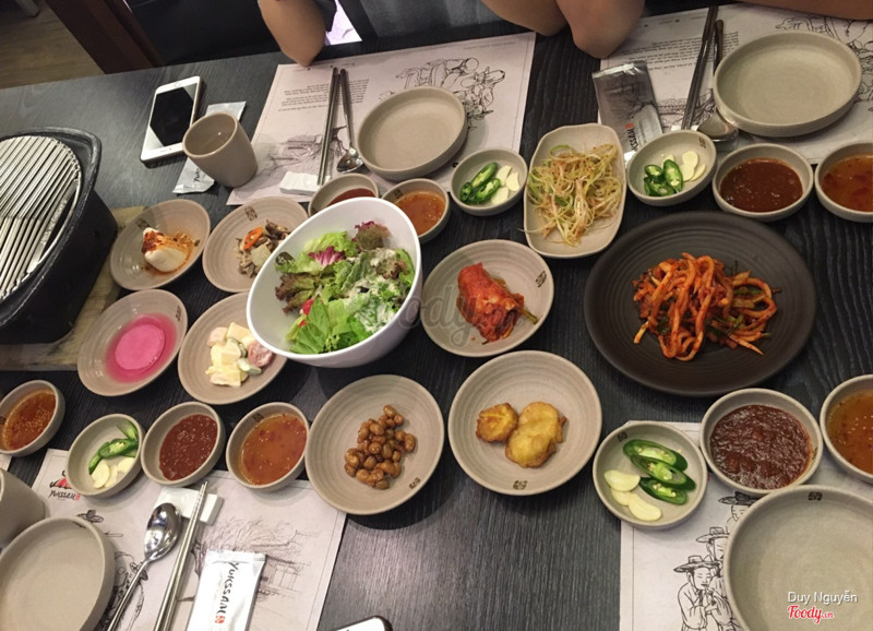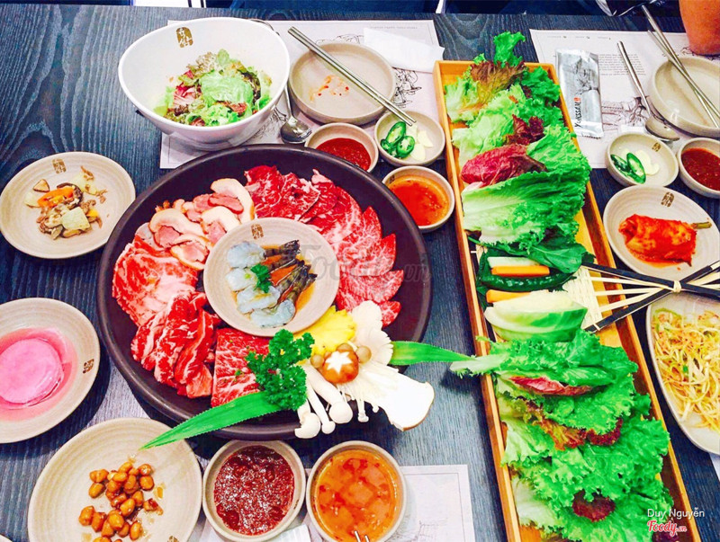 8.4Lẩu nướng hàn quốcThực sự là nhà hàng quá là ok. Từ bác bảo vệ cho đến nhân viên ở đây đều rất là tận tình và nhanh nhẹn. Nhà hàng mới mở lên đang có rất nhiều khuyến mãi. Điển hình là khi gọi sét combo nướng chỉ từ 490k là ta đã có ngay 1 nổi lẩu nhé. Combo nướng thì có 6 set vs mức giá khác nhau. Thịt ở đây ướp khá mềm và ăn k bị dai, lẩu cũng ok nhé và rất là đầy nữa 😍😍 Pancha ăn kèm thì cực kỳ ngon, có thể nói ngon nhất các quán hàn đã từng ăn và nó được thay đổi theo ngày. Đồ uống thì cũng chưa đc phong phú cho lắm nhưng mình thích nhất là rượu phúc bồn tử 😘😘 Quán có 4 tầng, view đều cực đẹp nhé. Nếu bạn nào có ý tổ chức sinh nhật thì lên đặt bàn trước và sẽ được nhà hàng chuẩn bị có quà cho bạn nữa nhé :) ...Xem thêm