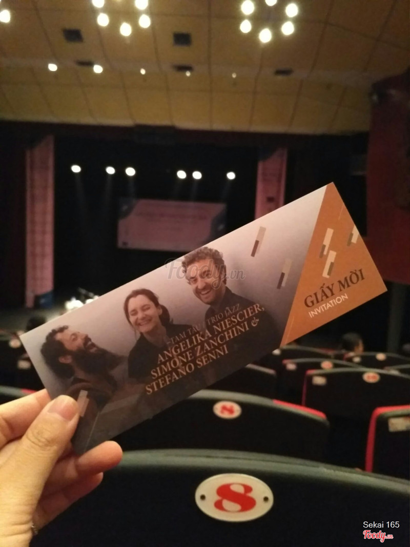 7.0Nhà hát Tuổi TrẻNhà hát Tuổi Trẻ là địa điểm quen thuộc trong những lần liên hoan âm nhạc châu Âu. Liên hoan âm nhạc châu Âu năm nay cũng được tổ chức tại đây là chủ yếu. Nằm ở con phố Ngô Thì Nhậm hơi tối nhưng rất dễ thấy, Nhà hát Tuổi Trẻ có chỗ để xe hơi chật nên khi đón một lượng khách lớn đến tham dự liên hoan âm nhạc châu Âu, dù mình đến sớm 30 phút so với giờ diễn thì vẫn để xe sát cổng vào, mà may là còn để được ở đấy. Lối vào trở nên chật cứng vì hai ba hàng xe gửi, người thì đông. Các anh bảo vệ soát vé bằng việc bấm lỗ vé khá hay, mọi người lên tầng 2 để vào nhà hát. Bên trong rộng rãi, sạch sẽ, ghế ngồi êm nhưng các hàng ghế hơi sát nhau quá, không ai duỗi chân hay ngồi khoanh chân được nên ngồi lâu sẽ thấy hơi mỏi, đồng thời gây khó khăn trong việc di chuyển trong trường hợp người ở ghế sâu bên trong cần đi ra hoặc đi vào. Độ cao của hàng ghế cũng không hợp lý lắm nên nếu người ngồi trước cao hơn mình thì chắc chắn bị che sân khấu. ...View more