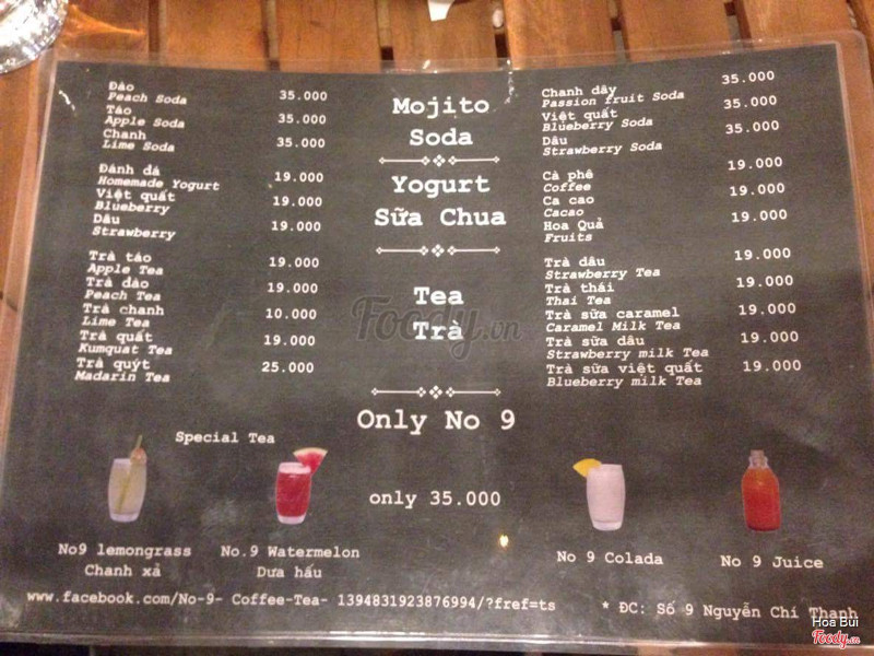 6.4No 9 Coffee & TeaTrước mình qua là thấy quán tận dụng không gian vỉa hè để buôn bán, sau vụ dẹp vỉa hè vừa rồi thì không biết quán còn trụ lại không. Cũng lâu rồi nên giờ không còn nhớ hôm đó mình đã uống đồ uống gì cả, chỉ nhớ là không ấn tượng lắm, kiểu ngồi ngắm đường với dăm ba câu chuyện cho vui, đồ uống là thứ yếu thôi. Bạn nhân viên niềm nở, nhiệt tình lắm, quán cũng không có mấy khách, hôm đó mình qua thì mỗi cặp mình với 1 khách quen của quán thôi. ...Xem thêm