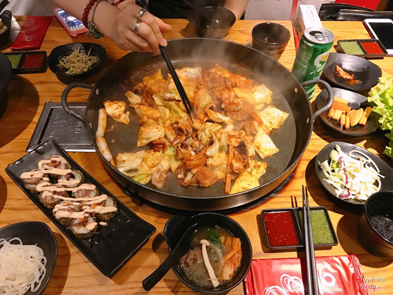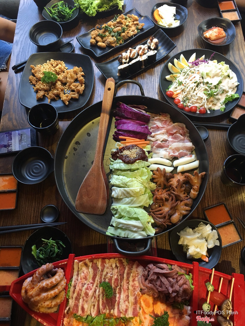 7.4Buffet lẩu bạch tuộcMình đến vào buổi trưa muộn muộn nên quán khá là vắng . Ấn tượng đầu tiên là các bạn nhân viên cũng nhiệt tình chào hỏi các kiểu , quán rộng và decor, bàn ghế rất giống mấy quán ở Hàn nhé. Hôm đấy đọc được tin có set buffet lẩu mới trên foody thế là phải cắp mông đi ăn thử ngay . Giá buffet lẩu hình như là 189k/người hay sao ấy. Gồm có một thuyền được set up sẵn như hình gồm thịt bò , gà , tôm , viên thả lẩu và bạch tuộc . Xong thì gọi thêm ko giới hạn các món đã được set up , nghe chừng kiểu đẫm đẫm ...Xem thêm