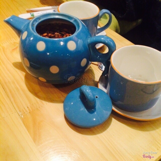 Mình biết quán lâu rồi vì hay có mấy cái kem ý mà giờ mới tới. Tới tầm 9r khách cũng kha khá, chỗ để xe ngoài vỉa hè cũng dễ dàg Không gian quán khá ổn. Có chỗ ngồi ngoài sân và cả chỗ ngồi trong nhà. Mình ngồi trên tầng 2, ko to lắm nhưng trang trí khá ấm cúng, trẻ trung, có cả ngồi bệt Menu nhiều thứ và rất khó để chọn. Bạn mình có xem qua review của mọi người rồi thì có bảo là mọi người khen trà hoa quả. Và nhờ bạn nv tư vấn mình gọi trà việt quất va ni Mình khá thích cốc và các bộ ấm chén ở đây. Nhìn khá xinh và còn nhiều loại khác nhau nữa. Trà phải chờ 1 lúc cho tan hết mới uống rõ vị. Chua là cái cảm nhận rõ nhất, vì việt quất và vani đều có mùi thơm nên hương thơm của trà này khá ấn tượg. Màu trà hồng đỏ đẹp mắt. Uống trà khá tiêu, chỉ có điều nếu ai đau dạ dày uống ko ổn, vì độ chua cuảvtrrà này ko bình thường lắm đậu Giá của ấm trà cho 2-3 uống này khoảg 50k ...Xem thêm