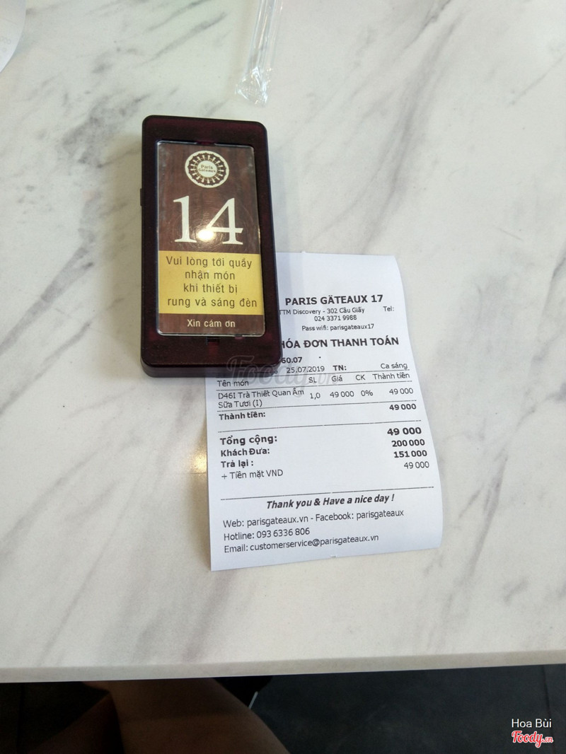 6.2Paris Gâteaux - Discovery ComplexParis Gâteaux - Discovery Complex, 302 Cầu Giấy Đây là 1 trong những nơi có view khá đẹp của các chi nhánh Paris Gâteaux. Mình yêu thích Paris Gâteaux vì decor ở đây là những màu mình yêu thích nhất (xanh và trắng) ngoài ra còn mang phong cách Paris sang trọng và hiện đại, chính vì thế nên nhóm chúng mình cũng rất thường xuyên đến đây. Về chất lượng trà sữa, trà không có gì đáng nói, ở mức trung bình, bánh ở đây thì ngon hơn so vơi trà sữa nhưng cũng chẳng phải là ngon xuất sắc! Nhân viên phục vụ thì thái độ hơi kém! ...Xem thêm