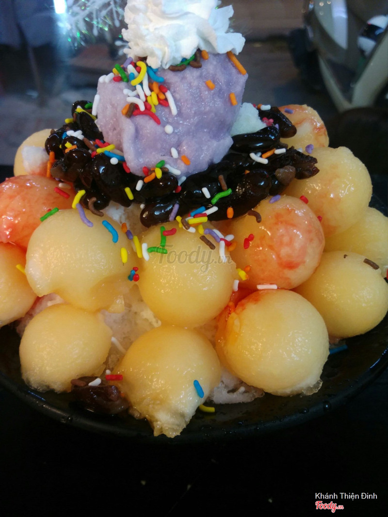 6.4Patbingsu Dessert - Quán ThánhPhải nói là cái thời gian vừa rồi Patbingsu quá hot nên các cửa hàng thi nhau mọc lên như nấm :)))) nhưng mà cái món này thực chất nó đâu đơn giản như những gì mắt chúng ta nhìn thấy trên film Hàn ;)) Ở đây, chính xác là Đá bào rồi nhưng mà toàn đá dăm dăm phải nhai lạo xạo chứ ko mịn đc như đá bào siro bán ở cổng trg học ý @@ dưa lưới thì ngon ạh, đậu đỏ thì mình nghĩ nên nấu nhừ hơn, đặc biệt là nên bỏ mấy hạt cốm đủ màu trang trí thêm kia đi ạh, ăn rất ko liên quan và trông cũng rất mất giá trị đồ ăn, như cho trẻ con vậy. Các bạn n.viên thì khá nhanh nhẹn, không gian cửa hàng bên trong bé, chỉ có 1 chiếc bàn dài liền cửa kính ngồi đc tầm 3-4ng sát nhau. ...Xem thêm