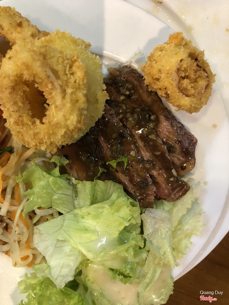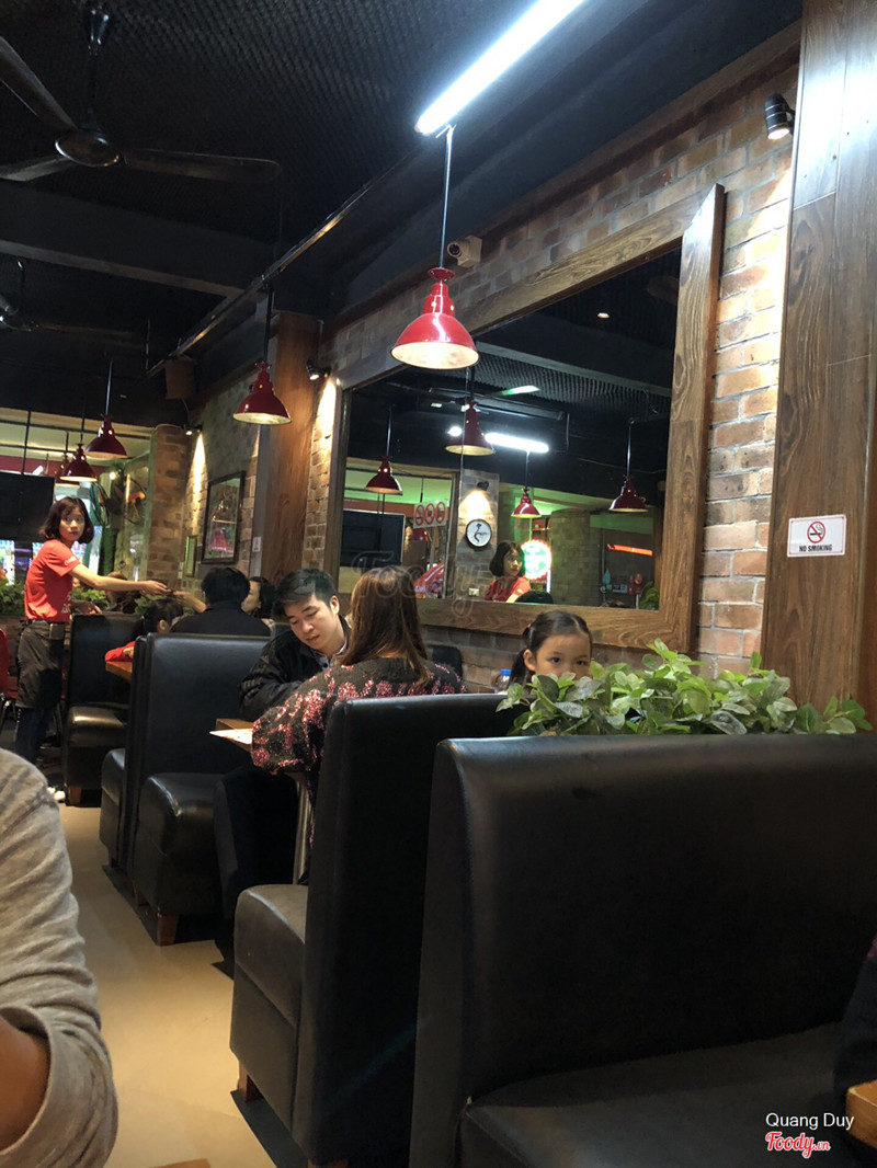 Nhà mình 2 người lớn 2 trẻ em gọi: combo family 345k. 1 suất 170k có4 miếng sườn và cơm rang. Coca 27 k. Sữa chua cafe 36k. Tổng là hơn 600k cả thuế nhé Thích ăn pizza và sườn ở đây nhất. Mình thấy piza và sườn quá ngon luôn. Nước thì đắt quá. Không gian thì đẹp. Nhiều khách tây. Phục vụ nhiệt tình. Cứ mang ra cái gì lại hỏi: anh chị ăn hợp khẩu vị ko, cần gì a chị gọi e nhé🤓 Điểm duy nhất ko thích là giá niêm yết chưa VAT Tối qua ra Nguyễn Du thấy chỉ còn bán mua về. Ko biết ở Nguyễn Du như thế nào nhỉ ...Xem thêm