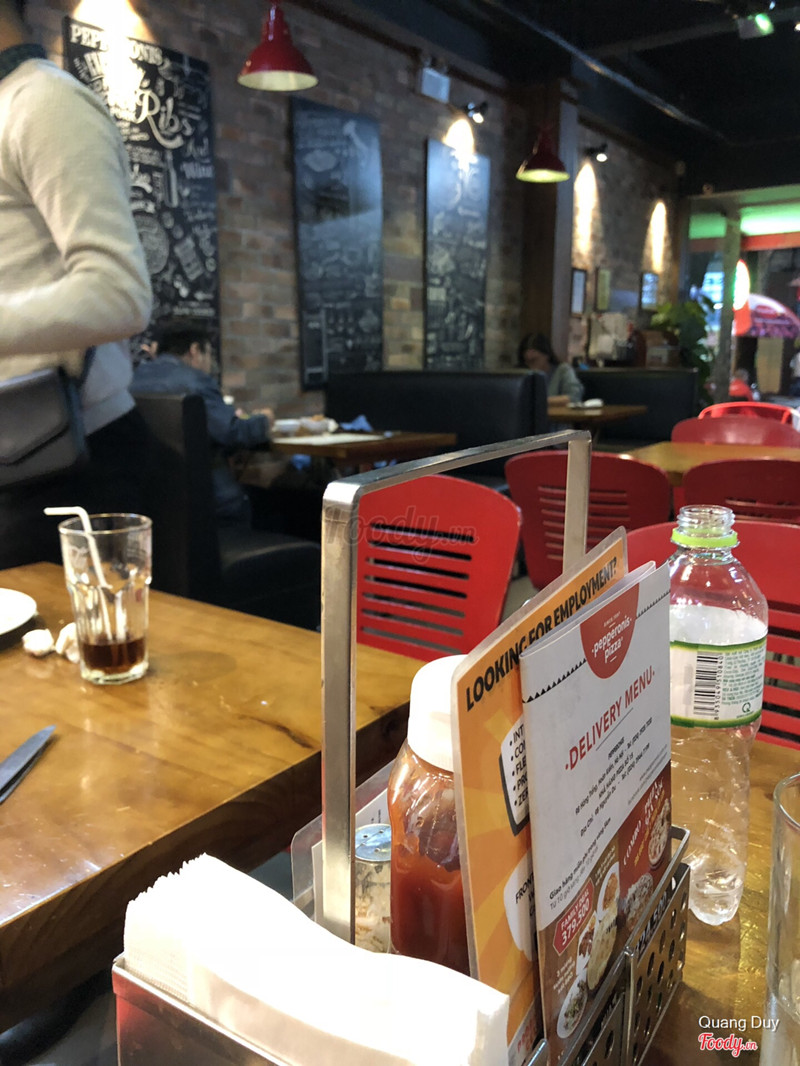 Vài năm trước khi chưa có nhiều thương hiệu pizza vào***thì Pepperonis vẫn là lựa chọn đầu tiên. Nhưng giờ chất lượng có vẻ đi xuống. Lâu không ăn ở Hàng Trống, đợt này ăn thấy phục vụ chậm chạp hơn. Hai người đi ăn thì serve 1 đĩa bò trước sau 30p đợi, sau đó 15p serve tiếp đĩa cơm chiên cho người còn lại. Nhân viên phục vụ thiếu nhiệt tình hơn trước. So với mặt bằng chung của các thương hiệu pizza khác, Pepperonis giờ vẫn đắt mà lại không ngon. ...Xem thêm
