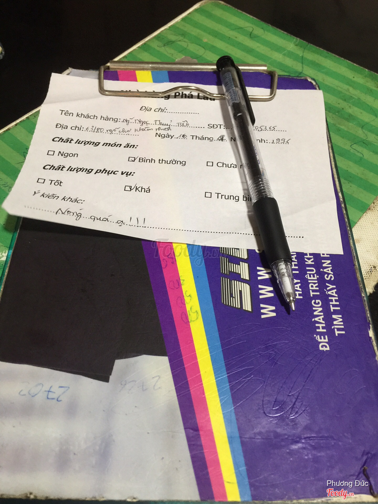 Ghi chú đặt bàn