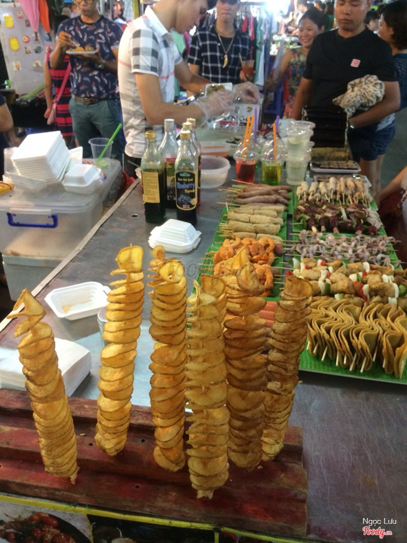 6.0Tưởng bở :))Ui chả mấy khi ra phố đi bộ chơi, nghĩ tnao lại rẽ ra chợ đêm lòng vòng phát :)) cũng biết khu ăn uống này lâu roy mà chả baoh vào í, hnay đi qua buồn mồm lại lao vào chốn xô bồ này )) ấy thế mà vớ lun 2 a hờn quắc đz mỗi tội bẽn lẽn thẹn thùng vì tg toy chụp ảnh nhg thực ra là toy chụp chị bán hàng đang làm đồ ăn mà chg may bị dính 2 anh vào hình thoyy :)) xem lại hình mới thấy buồn cười😂😂 Đồ ăn ở đây thì cũng đc, có món thịt ba chỉ bò cuộn rau củ vs gà xiên chiên hàn quốc khá ngon, còn bánh bao chiên k tới, tôm xiên là chả thoy chứ kp tôm thật ăn cũng tạm, khoai lốc xoáy cũng ổn mà hơi khô... cơ mà giá thì chát quá 15-20k/xiên đó các mẹ :< trót nhặt r cơ mà vẫn xót ví lắmm. Công nhận lời lãi thật. Phục vụ thì cũng nhanh nhẹn và nhiệt tình nhg hok đc thân thiện lắm, sốt cho hơi ít :) tổng cộng chỗ kia là 120k nhá. Xong! ...Xem thêm