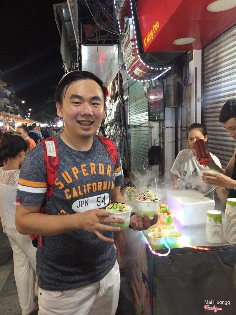 7.0Phố Ẩm Thực - Hàng BuồmĐang rảnh nên review cho mọi người cái món Bỏng khói - Kem khói này ở ngay phố đi bộ Chợ Đêm 🤔 🍁 Đchi: Có mấy hàng liền ở Hàng Đường Hàng Đào nhé! Mình thấy lạ mắt chứ ăn thì k ngon. Bỏng tuy màu xanh đỏ nhưng ăn k hề có vị gì là ngọt hay kể cả kem cx k có cảm jac j là kem lạnh, hay những viên ice cream mà mọi người tưởng tượng đâu. Nó chỉ đơn giản là: Những viên bỏng nhả khói 😂😂 Mà cái giá thì quá chát nhea: 40k/1 cốc này thật k xứng đáng ngoài checkin quay video mấy giây 😳 ...Xem thêm