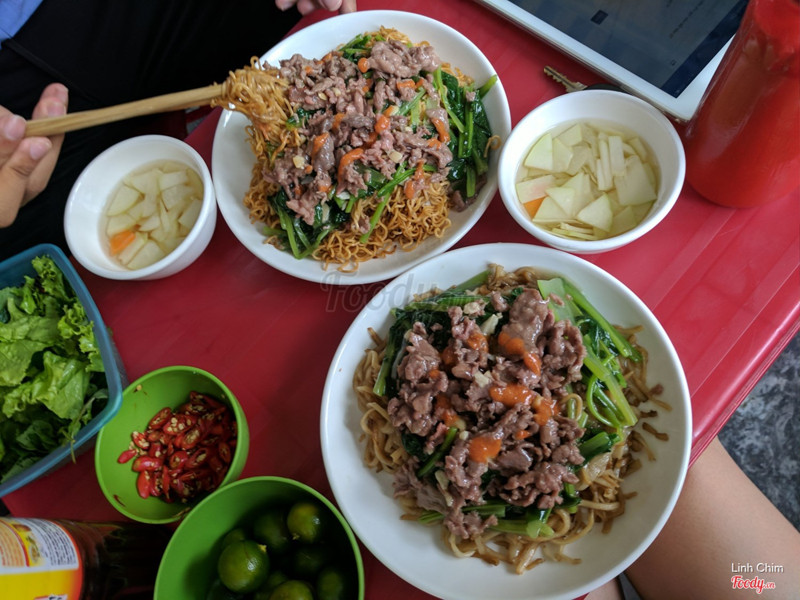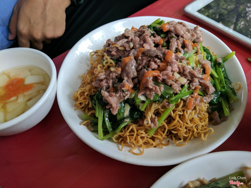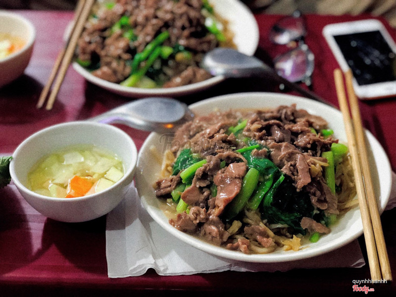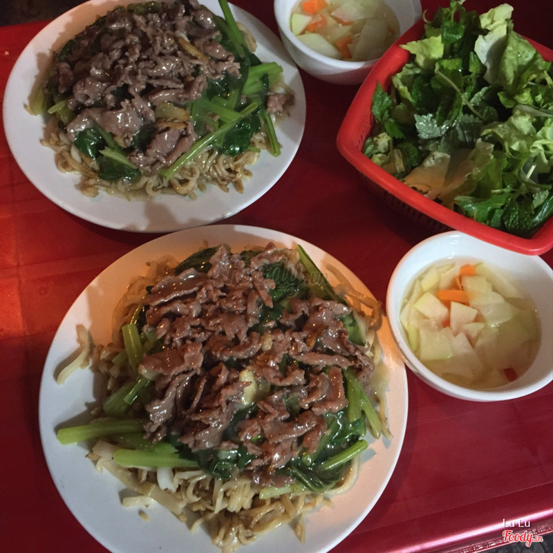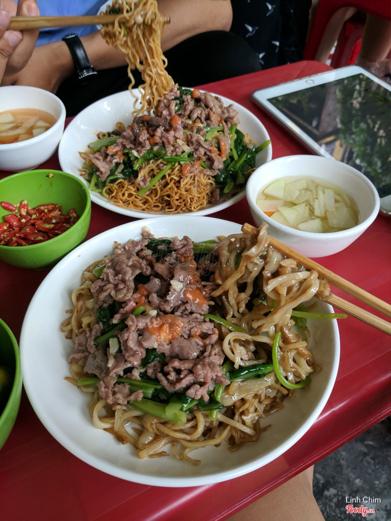 Mỳ xào giòn ở đây chuẩn không cần chỉnh. Sợi mỳ khô không ngấm dầu, vẫn còn thơm giòn tan. Thịt bò xào vừa tới, nước sốt quyện cùng mỳ giòn sẽ khiến sợi mỳ mềm hơn ở phần giữa, ngấm nước sốt đậm đà. Rau ăn kèm cũng giòn ngọt đỡ ngấy. Bát nước dùng có hành và rau mùi, ngọt vị xương bò đặc trưng nước phở. Thêm chút hạt tiêu thơm lừng. Quẩy còn có bát nc chấm vs đu đủ xanh y như hàng quẩy nóng. Hèn chi đi qua Bát Đàn, lúc nào cũng thấy vỉa hè đông đúc. Cảm thấy còn ưng hơn cả phở xào mềm ở đây. Giá :60k/đĩa.