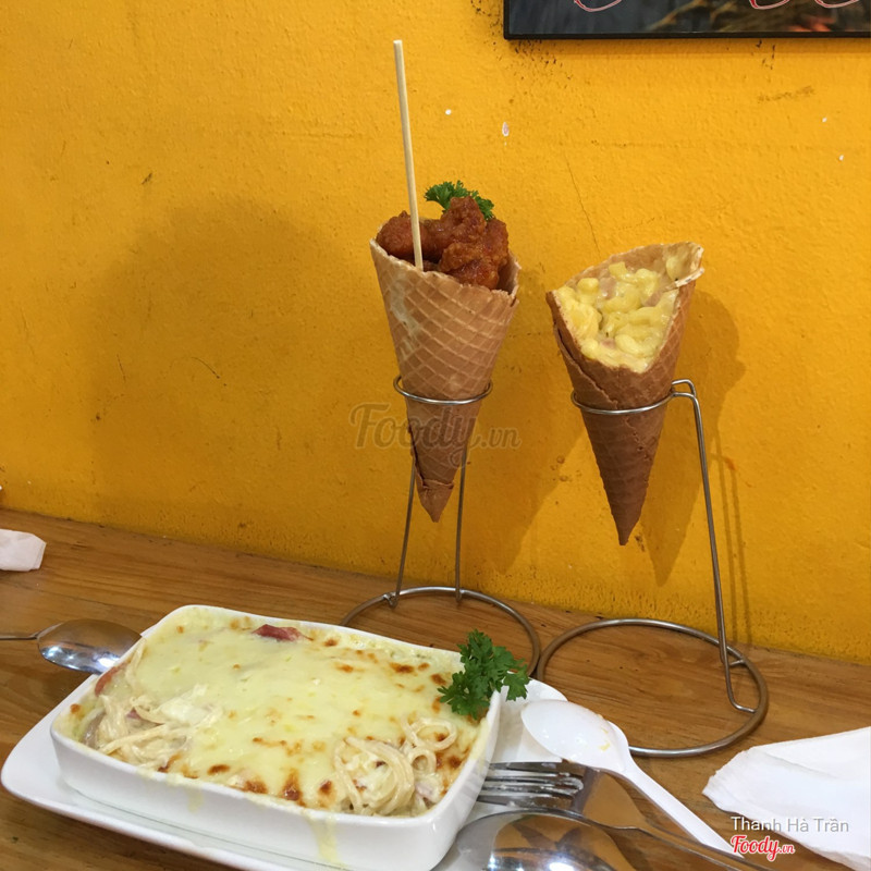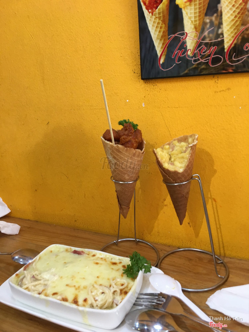 8.2Pizza ốc quếLần đầu thấy pizza ốc quế và gà ốc quế ở Hà Nội. Pizza ốc quế thì phần đế vẫn là đế pizza như bình thường, mềm, không bị cứng. Gà ốc quế thì bên trên là gà, phần dưới thì như vỏ của kem ốc quế ấy. Hôm đó bọn mình gọi 1 Chicken cone sauce bbq, 1 Mac & cheese (nui sốt kem phô mai) và 1 Oven spaghetti Ham, Mushroom cream sauce (Mỳ ý bỏ lò phô mai với sốt kem nấm) Gà chưa được đậm vị lắm nhưng những món ăn với sốt kem thì mình khá có ấn tượng vì sốt rất vừa, không loãng cũng không đặc, ăn nhiều cũng không bị ngán. Anh chủ ở đây thân thiện, nhiệt tình lắm. <3 ...Xem thêm