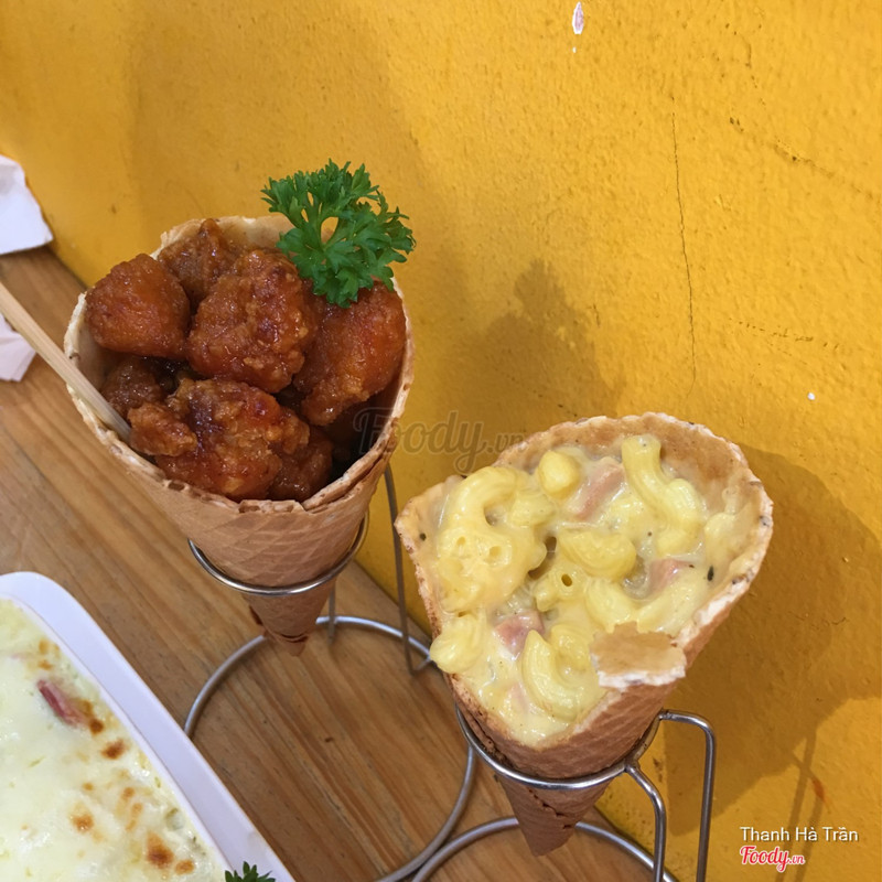 5.0Pizza Cone - Ngõ TrạmChỉ là gà rán với nui phô mai thôi nhưng cho vào ốc quế là hấp dẫn bội phần 😂😍🤤 Mình thấy với giá 30k cho mỗi cái là khá ổn đấy chứ. Gà viên k ưng lắm vì hơi khô, sốt cay k đặc sắc, nhưng mà nui phô mai hay gọi sang mồm là mac and cheese thì ưng đấy, đẫm cheese nhiều xúc xích nên mình mình xử lý vèo phát hết trong một nốt nhạc, ai k hợp mấy đồ ngậy thì sẽ thấy ngấy đó. Còn ốc quế chắc chỉ cho đẹp thôi, à cái nui có phô mai nên ốc quế còn hợp tí . . ...Xem thêm