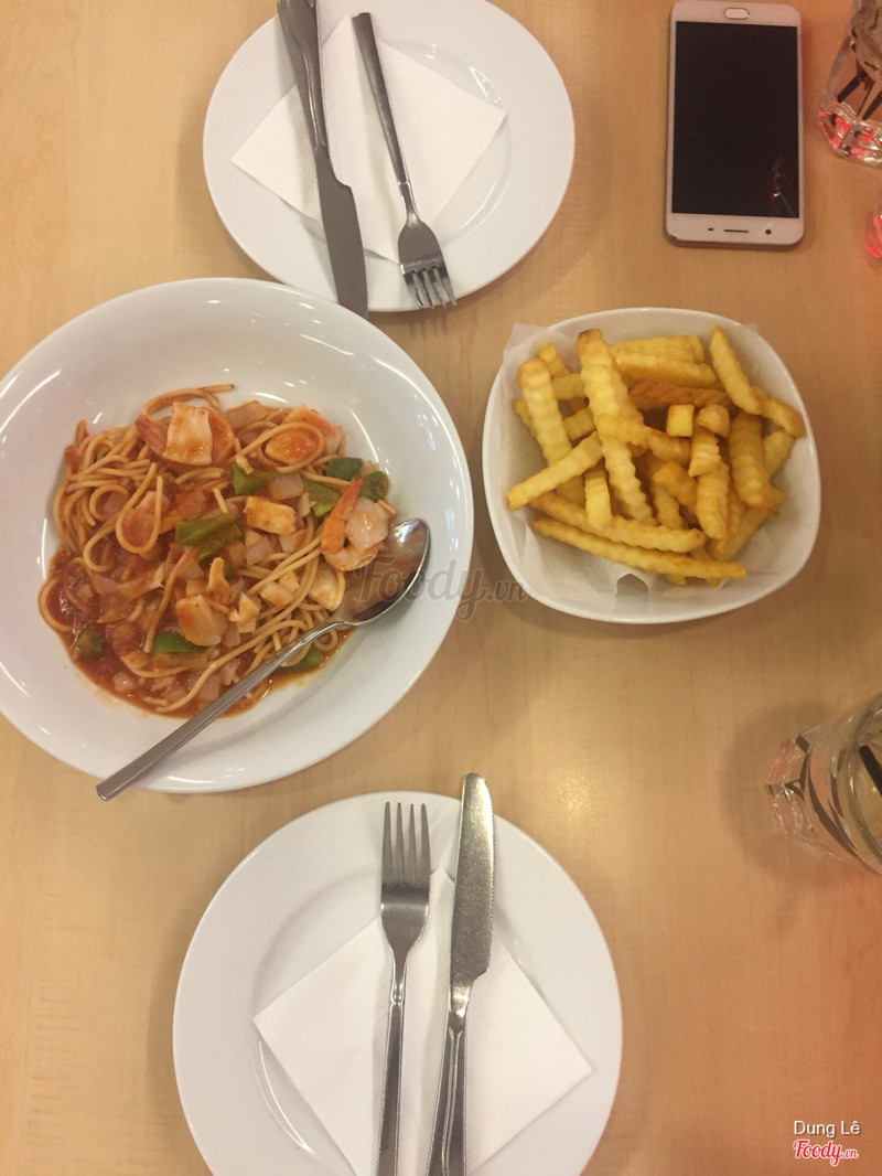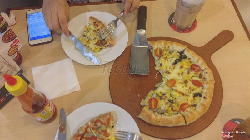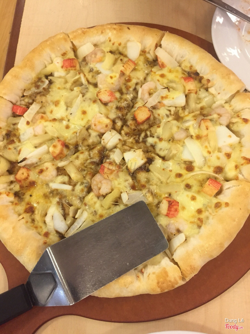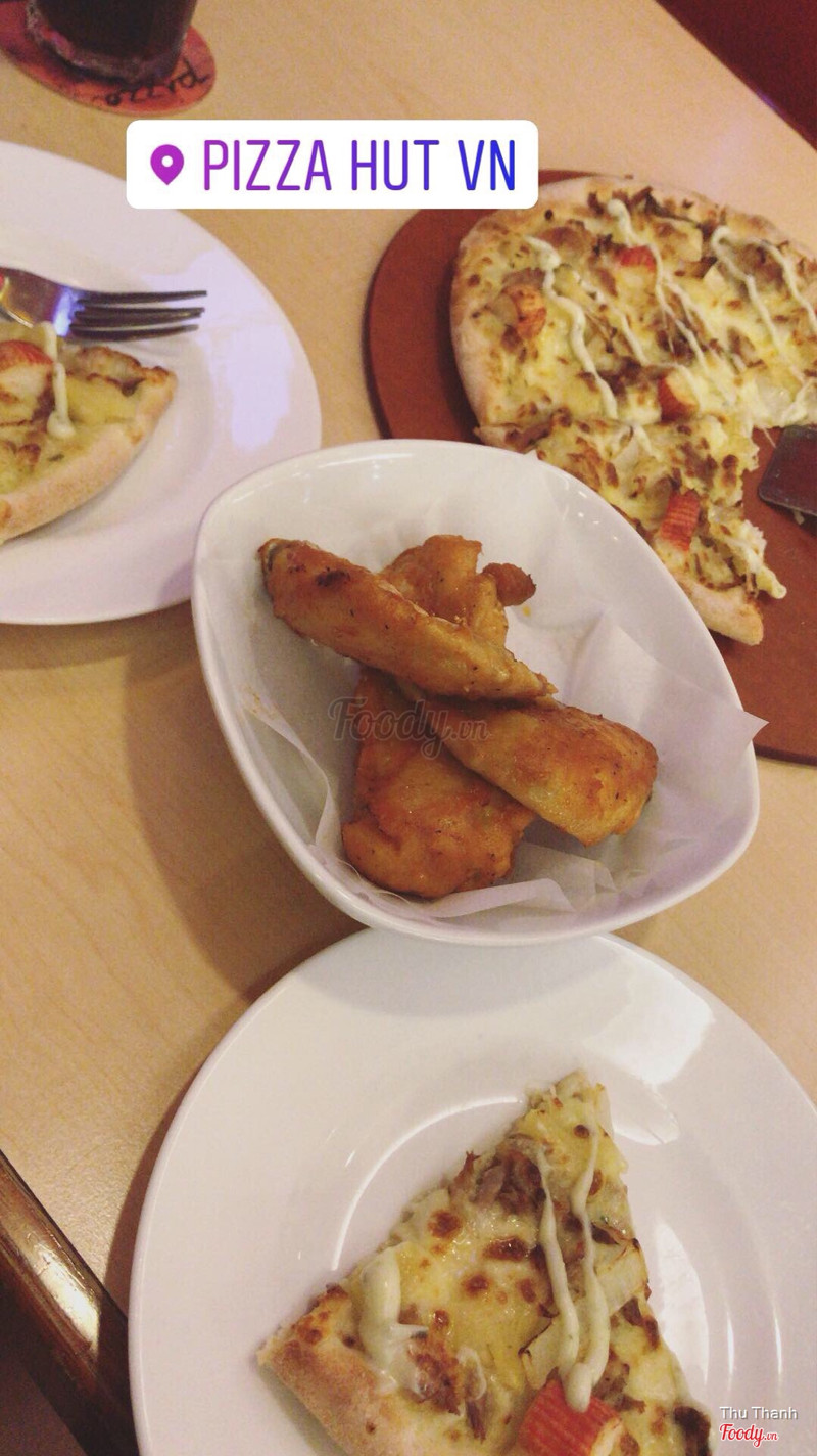 6.4Pizza Hut - Royal CityBọn mình ăn 2 người tại Royal. Pizza hải dản sốt tiêu đen khá là ngon và các bạn nên nâng cấp đế bánh để có 1 viền phô mai nữa ăn cho ngậy ngậy lại còn bớt cay. Mì ý thì vẫn ngon như mọi khi. Ngạc nhiên nhất là rổ khoai. Mọi chỗ khác thì khoai họ làm thì chie nóng được một lúc khi đưa cho khách còn lúc sau nguội ngay còn Pizza Hut thì khác bọn mình ăn khoai đến tận cuối bữa nhưng khoai không hề mềm oặt mà vẫn giòn. Đây là điểm cộng ở đây. Nhân viên ở đây khá là lễ phép nhưng mà nhiều khi mình phải nhìn mãi, gọi đi gọi lại nhân viên mới chịu đến bàn mình. Lẽ ra nước phải ra thật nhanh nhưng bọn mình ngồi đợi tận 10’ mới có người mang nước ra mà chỉ có 1 chai nước và 1 cốc coca. Đây là điều khá buồn cho Pizza Hut nơi này. ...Xem thêm