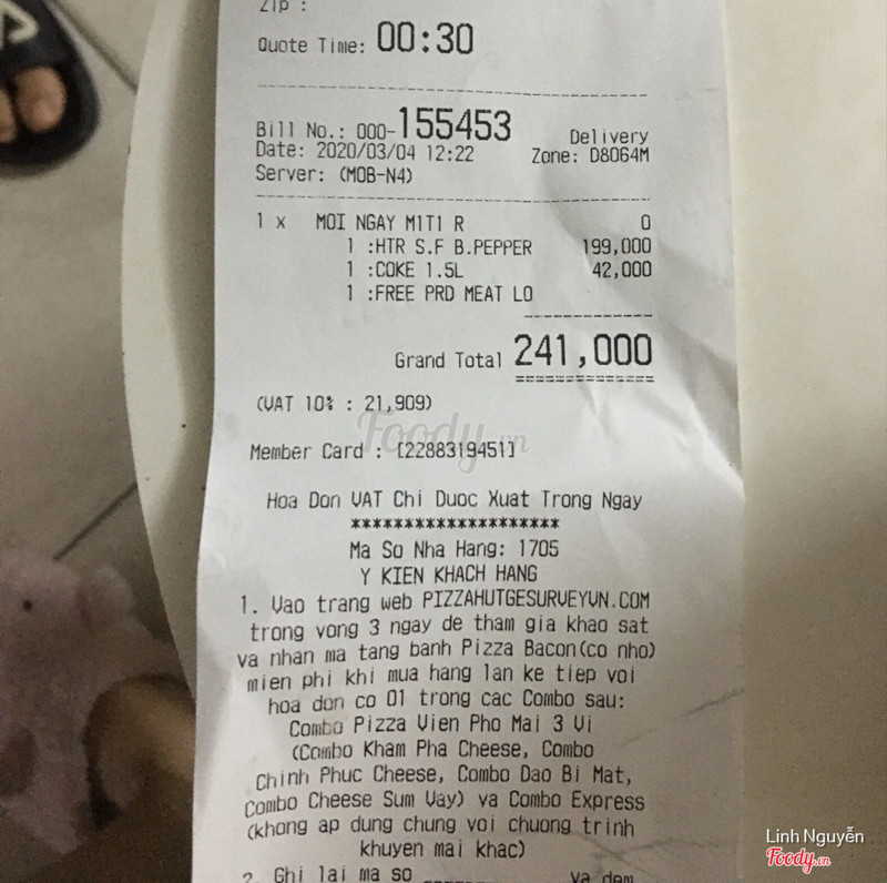 4.0Nhân viên không nói rõ về combo hải sảnMình gọi combo hải sản cao cấp 2 người ăn và thấy ghi chú là có thể thay nhân bánh sang các loại khác. Hỏi nhân viên là thay sang loại hải sản thì thế nào, nhân viên đề xuất 1 loại nhân hải sản khác mà ko nói là nếu thay nhân thì ko được viền bánh phomai giòn như trong combo. Lúc đưa bánh ra mới ngỡ ngàng. Hỏi nhân viên thì cũng ko thèm xin lỗi mà chỉ nói là viền bánh này ko được dùng cho các loại nhân khác thế mà vẫn tính là combo. Bực mình vì ko được giải thích kỹ vì bt combo của hut nếu thay nhân thỉ viền vẫn giữ nguyên. Tính ra combo của mình cũng chả rẻ hơn mà ăn còn thấy bực mình ...Xem thêm
