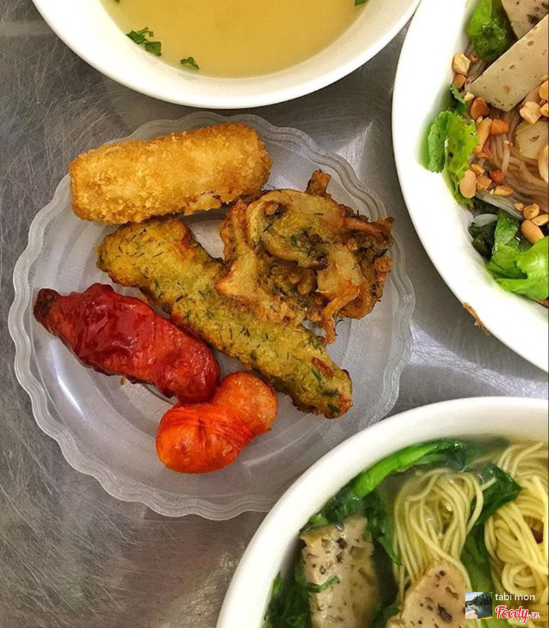 7.6Quán ăn chayRằm ăn chay, buổi trưa thanh mát. • Quán chay này không khác gì quán cơm bình dân, chỉ có điều là bán món chay thôi, nhà mình ưng quán này phết đó. Không gian nhà cũ, mát mẻ, yên tĩnh trong phố 8/3. Đồ thì đa dạng lắm, mà nấu đều tay, chất lượng, có mấy món mình thấy khá nổi bật như giò nấm, nấm đùi gà trộn thính, nem bí đỏ, dồi lạc, sườn chua ngọt... Ngoài cơm còn có bún, bánh đa, mì, trộn và nước, hôm nay mình gọi bún trộn và mì vằn thắn. Đều ổn. Đặc biệt nước dùng rất rất thanh luôn, ăn cuốn lắm đó. • ...Xem thêm