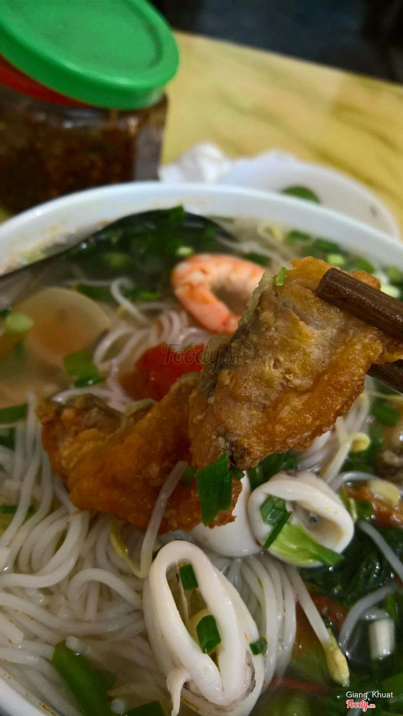 10Ngon rẻMột bát bún ở đây có giá 25k và khá là đầy đặn. Bát bún có 2 miếng cá, 1 con tôm vừa vừa, khoảng 3 đến 4 con mực nhỏ, 6 đến 7 con ngao. Nước dùng ở đây rất vừa miệng, chua chua thanh thang rất dễ ăn và không cay. Quán nằm trong ngõ nhỏ nhưng mình thấy rất đông khách. ...Xem thêm