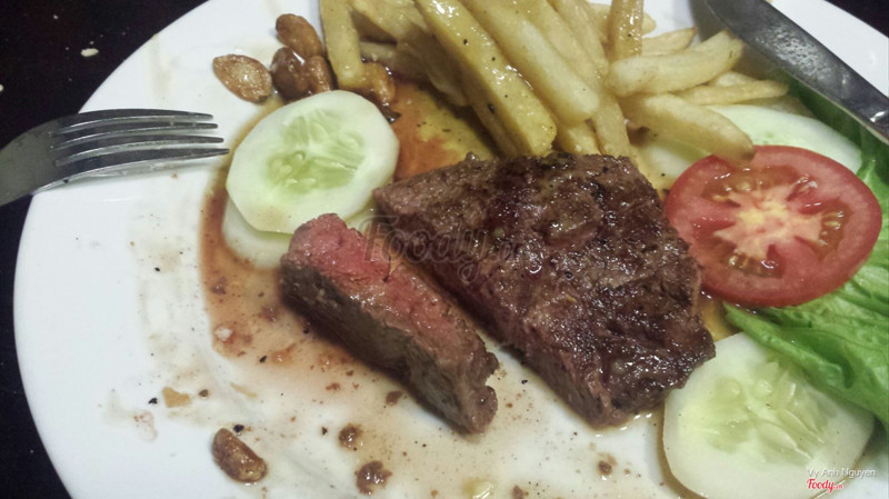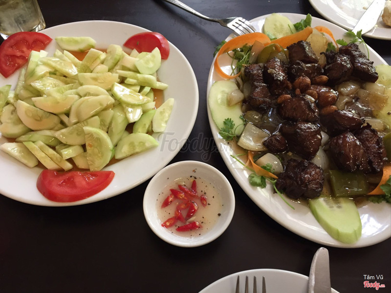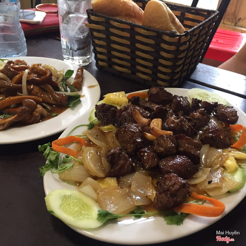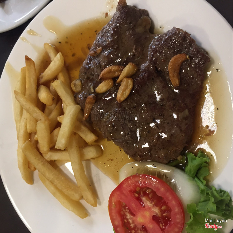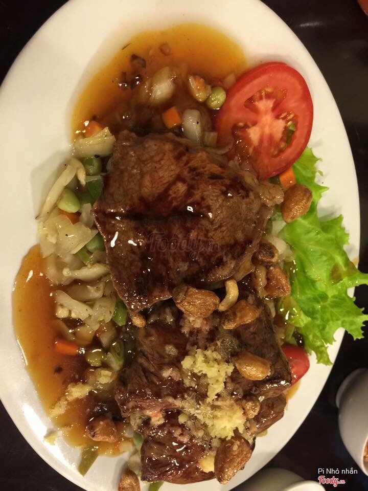 🏠Địa điểm: Quán nằm giữa đường Nghi Tàm, có biển to khá dễ tìm. Quán khá đông, vào giờ ăn trưa, ăn tối nhiều khi phải đứng đợi bàn, lại không tìm được số điện thoại đặt bàn của quán. 🍽 Đồ ăn: Menu của quán không có giá tiền đâu 😭😭😭 Họ sẽ dựa vào số lượng khách hàng để làm suất to/suất bé. Bạn nên hỏi trước giá tiền nếu lần đầu đến đây nha, và căng tai nghe cho chuẩn 😂😂😂 Mình đã có lần nghe nhầm giá, lúc thanh toán hoá đơn xong lại sốc 😂😂😂 Ngoài cái chiện menu không có giá hơi bất tiện, thì đồ ăn ở đây phải gọi là very very good luôn 👌🏻 Thịt bò mình gọi chín nhưng mà vẫn rất mềm, không bị dai, bã. Nước sốt của các món cũng rất vừa. Những món mình đã ăn: - Bò lúc lắc: đĩa 2 người 225k, khá nhiều. Nếu gọi nhiều món thì đĩa này 3,4 ng ăn được nha. Miếng thịt thái vuông rất vừa miệng và dễ ăn, nước sốt nấu với hành tây, dứa vị hơi chua lại rất phù hợp. - Bò bít tết: 125k/đĩa, nói chung là không khác bò lúc lắc mấy 😆😆😆 Ăn kèm với khoai tây nha.Nhưng tốt nhất đến quán hãy gọi đĩa khoai tây riêng ấy, khoai ở đây rất giòn và thơm. Khoai ăn lẫn với bít tết bị ngấm nước sốt nên ỉu rồi. - Bò phô mai: 275k/đĩa 2 người; nếu bạn đang nghĩ đến bít tết phô mai kiểu Âu thì không phải đâu nha, sốt ở đây phô mai rất nhẹ thôi, ai không thít ăn phô mai nhiều sẽ rất hợp với móm này. Em này thì khá khó ăn vì bò được cuộn tròn cắt miếng khá to - Đĩa nướng tổng hợp: không nhớ giá tiền - em này không có gì đặc sắc giống các em khác thôi 🤗 - Món nhất định phải gọi: DẠ DÀY, 75k/đĩa với nước sốt cực thần sầu luôn. Nhớ gọi kèm bánh mỳ ăn cùng nha. Cuối bữa có thể gọi thêm ít cơm rang, rưới ít nước sốt của bò lúc lắc vào thì hết xẩy đó!!!! Quán còn có các món cơm, canh, salat. Gọi thêm mayonise 15k/bát ăn ngon nha ⏱Nhà hàng phục vụ cực nhanh nha, như kiểu đến gọi xong là đồ ăn được bê ra luôn ấy. 💰Giá tiền khá cao so với một quán tầm trung bình nhỉ? Để đi ăn bình thường với 250k-300k/người thì ngang với đi ăn buffet rồi 😱Nhưng so với chất lượng món ăn thì hợp lí 🤗Xem thêm- Đây là nhận xét từ Thành Viên trên Foody, không phải từ Foody Corp. -
