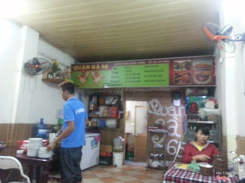7.4Quán Gà 65 - Trần Quốc HoànĐồ ăn ngon, xôi đỗ dẻo, gà luộc vừa. Mình gọi suất đem về, đồ ăn gói cẩn thận, sạch sẽ. Anh chị chủ quán rất vui vẻ và nhiệt tình. ...Xem thêm