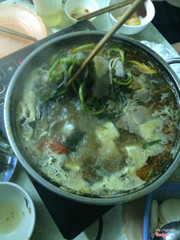 7.0Quán Lẩu - 28 Phùng HưngChả mấy khi lên tận phố này ăn lẩu đâu, hôm ấy tổ chức xong sự kiện nên tận 1h sáng mới ghé vào đây ăn đêm. Quán không rộng lắm nên hôm ấy mình phải lên tận tầng 3 mới có chỗ để ngồi, và cũng chỉ đủ cho 15 con người ngồi vừa thôi. Về lẩu thì ăn được, nước lẩu ngọt, có nhiều đậu nhưng lại hơi ít nấm. Thịt ăn bình thường, rau khá nhiều gồm có hoa chuối, rau muống, rau cải cúc... Mình khá thích hoa chuối, nhúng lẩu vào ăn ngọt. Phồng tôm ăn giòn, không bị ỉu. Điểm trừ là rượu táo mèo uống hơi chán. ...Xem thêm