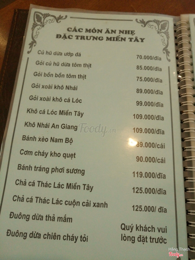 Có chút nhận xét thế này Đồ ăn : theo đúng tên quán là đồ ăn miền Tây Đặc biệt thì quán có bún mắm chan, bánh hỏi Mình gọi 1 tô bún mắm. Nước dùng được nấu từ mắm cá nhưng có vẻ hơi tiết kiệm và thiếu cay Về phần thịt thì 1 tô chỉ có tôm và mực mà thiếu thịt quay bù lại thì rau ăn kèm đủ vị từ rau đắng,bông súng,kèo nèo, điên điển đương nhiên không thể tươi mơn mởn như ăn tại nơi ấy được nhưng cũng tạm giải quyết khâu nhớ Một bát vậy là 65k. Khá là đắtXem thêm- Đây là nhận xét từ Thành Viên trên Foody, không phải từ Foody Corp. -