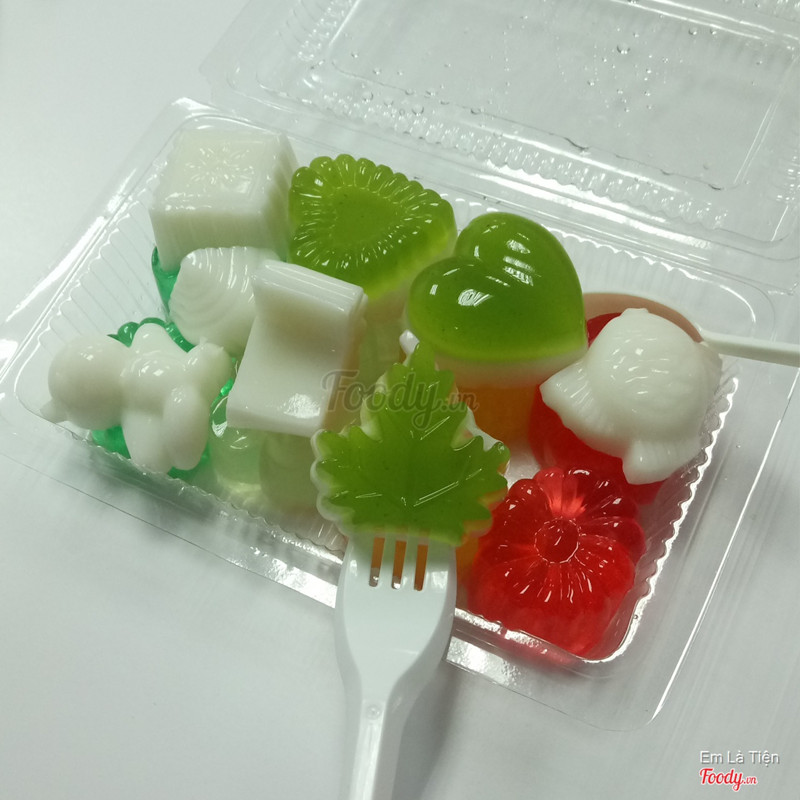 7.0Rainbow Jelly Cake - Bánh & Thạch Rau CâuChiều mát với hộp thạch rau câu bắt mắt đủ hình luôn à. Thạch với nhiều hình nhiều màu, nhìn ngộ ngộ ăn mềm thanh mát. Mình thích ở chỗ là nó có độ ngọt vừa phải và giá khá phải chăng 2,5k 1 viên. Có 2 hộp panacotta vị dâu tằm và vị chanh leo. Cả 2 hộp mình thấy ăn đều ổn, rõ vị dâu tằm và chanh leo, cốt mềm và thơm. Giá cho hộp đó là 12k/hop. ...Xem thêm