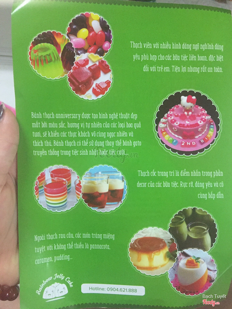 1.0Rainbow Jelly Cake - Thạch Rau Câu & Đồ Ăn VặtChất lượng quá kém. Treo đầu dê bán thịt chó. Dưới đây là bánh hình trên foody và bánh nhận được màu nhìn quê mùa xấu xí. Bánh ăn vị qua bình thường. 60K giảm 30% còn 42K mà bánh bé tí tẹo chỉ như bánh trung thu 150G. Quá thất vọng, cảm thấy bị lừa đảo trắng trợn ...Xem thêm