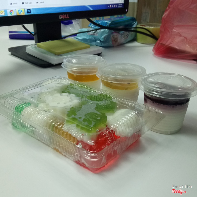 7.0Rainbow Jelly Cake - Bánh & Thạch Rau CâuMấy bữa nay nóng bức bí bách trog người nay lại được mua cho ngay hộp thạch rau câu, bắt đúng bài quá )). Ăn rau câu cho nó mát, hộp thạch có nhiều viên nhiều hình thù và màu sắc tương ứng là các vị của thạch luôn có dâu, cam, bạc hà và mấy vị nữa ko nhớ, thạch ăn thanh thanh mát mát có bạc hà là rõ vị nhất, viên thạch to hình như 2,5k một viên. Ngoài ra còn có thêm 3 hộp panacotta dâu tằm, chanh leo 1 vị nữa ko ăn nên ko biết :)), lớp dâu và chanh leo bên trên hơi ngọt, chanh leo khá thơm, lớp màu trắng bên dưới ăn mềm ngậy. Giá cả phải chăng ...Xem thêm