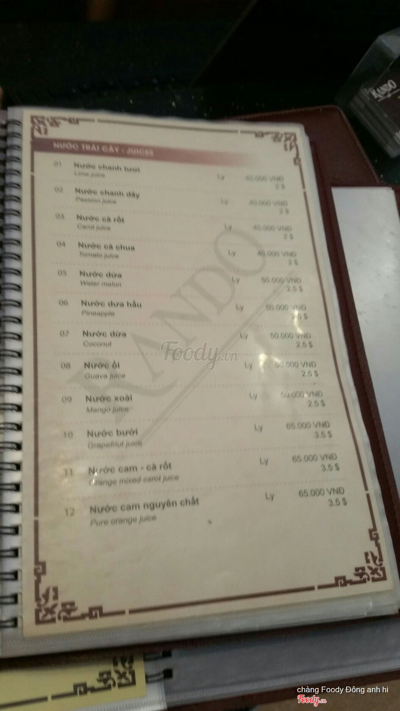 Ghi chú đặt bàn