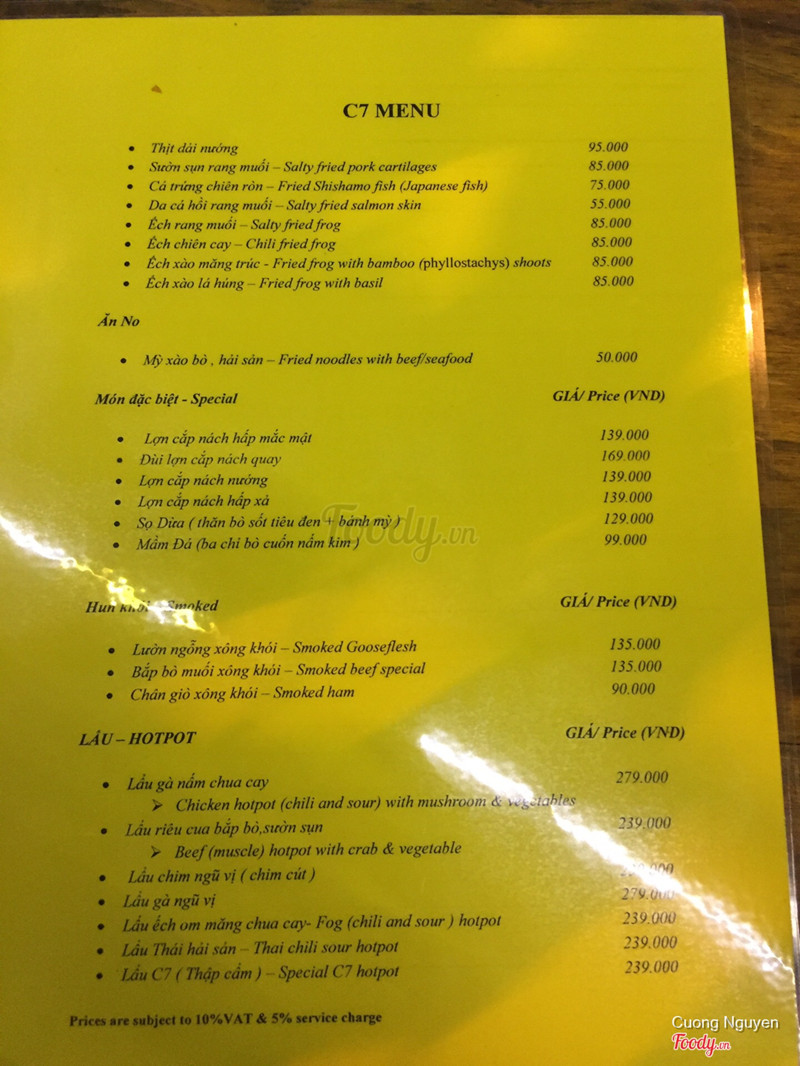 7.6Sân C7 Beer ClubQuán có không gian sân tập thể rất rộng rãi thoáng mát. Quán có khá nhiều loại beer để chọn, nhiều hãng khá lạ. Các món nhậu của quán khá đa dạng, nhiều món cũng lạ mà ngon, hôm ấy mình ăn có món "mầm đá" ăn khá hay, bò cuốn nấm kim hấp trên đá sỏi, thịt ăn mềm, ngọt, thơm, nhậu rất là thích :)) Món ếch rang muối lá lốt cũng ngon, nhắm khi uống bia rất là hợp. Lẩu chim thì mình thấy cũng ở mức ok thui, mình thích nó đậm đà hơn chút, được cái chim ăn ngon, múp :)) Hôm ấy quán đông nên lên đồ cũng hơi lâu 1 tý, nhưng vì đi nhậu uống là chính nên không vấn đề gì, mấy bạn nhân viên và anh chủ cũng tươi cười, nhiệt tình nên vẫn vui. Nhậu khoảng 100k/ người ở đây là thoải mái nhé. ...Xem thêm