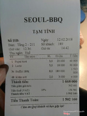 8.2Seoul BBQ 24-26***Đang có ưu đãi buffet 99k/người mà nay mẹ lười nấu cơm nên dẫn cả nhà qua thử coi sao. 😄 Vị trí : Quán ở khu trung tâm và khá gần ( so với mình ) nên đi lại thuận lợi 😐 Không gian : Chỗ để xe khá rộng rãi, lúc đến thấy có bảo vệ trông xe chứ lúc về không thấy ai cả, nhìn quanh để nhờ***í nghiêng hộ cái xe mà ko thấy đâu. Nhỡ ... thì sao ta 😢. Bên trong quán khá rộng rãi , mình ăn trên tầng 3. Mình thấy có giá trên trần nên ko rõ là quạt hay hút mùi gì gì nữa nhưng phải bất ngờ là quần áo hay đầu tóc không bị ám mùi như khi ăn ở các quán khác 😬 Nhân viên : Mình thấy mọi người kêu đồ lên chậm nhưng mình thấy khá nhanh mà, mặc dù quán đông. Nhân viên lễ phép, nhiệt tình, mặc dù lúc đầu hơi bơ khách tí nhưng thôi, bỏ qua. Anh quản lý chu đáo , đứng từ xa thấy nhân viên gắp than không cẩn thận là chạy tới nhắc nhở và thay đĩa cho khách ngay 🤗 Đồ ăn : Tươi, Ngon, Đa dạng. Mình thấy rất nhiều món từ khai vị , món chính đến tráng miệng như gimbap, salad đến cơm trộn, canh rong biển, ngô xào phô mai,sữa chua, hoa quả,... À có điều cơm trộn hơi nhão nhé 😞 góp ý thêm, mong quán chú ý hơn Do mình mải ăn quá quên ko chụp , có mỗi cái hoá đơn thôi, hêhheh Nói chung là ổn, sẽ quay lại ...Xem thêm