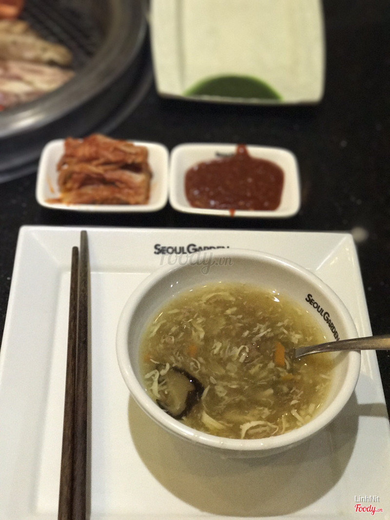 8.2Seoul Garden - The Garden- mình đi 5 người 3 ng lớn 2 trẻ con vào hôm chủ nhật, gọi suất buffet 299k. Đồ nướng ở đây rất đa dạng: thịt gà, thịt bò, hàu nướng phomai, tôm,..... Quầy line có rất nhiều món tráng miệng và ăn nhẹ cho trẻ con như tok hàn quốc, khoai tây chiên, kimbap, súp gà.... và 1 dãy đồ nướng để khách tự lấy. Minh thấy ở đây kim chi khá vừa, salad xoài + nộm sứa khá ngon. Miếng thịt để nướng cũng dày dặn. Sốt ở đây thì đa dạng: có đủ từ mù tạt, tương cà, ...😝 - lẩu ở đây cũng khá ngon. Đồ nhúng có ba chỉ bò, tôm. Nước lẩu thái chua cay ăn khá ngon 😝 - hoá đơn sẽ thu 10% VAT, mình có thẻ thành viên của Redsun nên đều thanh toán đc giảm 5% cho tất cả nhà hàng thuộc hệ thống này😋 - nhân viên phục vụ khá nhanh và niềm nở , đứng nướng và cắt thịt cho bàn mình. - không gian rộng rãi và thoải mái sạch sẽ😛 ...Xem thêm