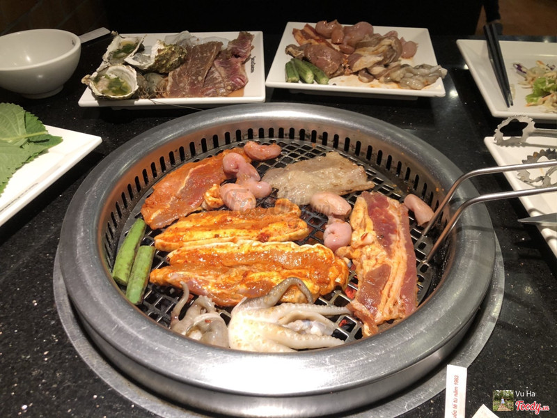 7.2Seoul Garden - Vincom***Mình được anh bạn đưa đi ăn sinh nhật ở đây. Một trong những lần ăn no nhất của mình. Ăn 2 người với bill trên 800k. Vì còn gọi lẻ và thuế thu nhập. Bọn mình ăn 2 suất buffet 299k một người, có 1 suất đắt hơn có 1 số loại hải sản khác nhưng có vẻ 2 đứa cũng không có nhu cầu. Ăn nướng trước lẩu sau. Buffet hoàn toàn tự lấy chứ không kiểu như Gogi nên đỡ phải chờ đợi nhân viên, chỉ gọi các bạn ý ra thay vỉ thôi. Đồ để ăn nướng và lẩu khá đa dạng phong phú, ăn ngon. Có gà hôm đó có mùi lạ bọn mình không dám ăn. 2 đứa ngồi ăn cả nướng cả lẩu hơn 3 tiếng mà toàn slim không :)) Không gian rộng rãi, đẹp. Vị trí Vincom BT khá đông đúc. ...Xem thêm