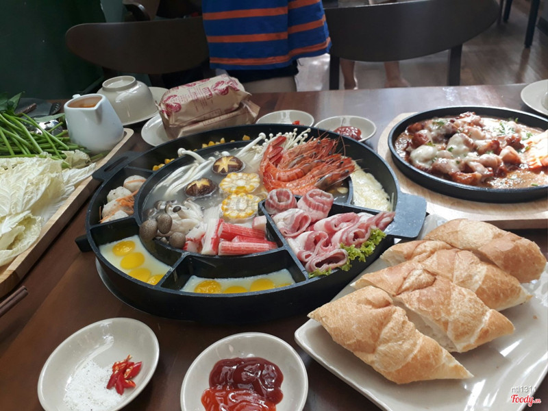 8.6Sogo Cook - Lẩu Hongkong# Từ ngoài nhìn vào thì không khác nhiều so với các nhà hàng khác... nhưng lúc bước vào trong mới biết là khác không tưởng😂 Đây là nhà hàng lẩu đẹp nhất mà mình từng thấy, decor của nhà hàng chắc chắc sẽ làm mọi người liên tưởng đến một quá cafe vintage nhiều hơn là lẩu😅 đến lúc hỏi ra thì mình mới biết cô chủ nhà hàng là người decor toàn bộ, đồng thời cũng là người decor cho chuỗi cafe nổi tiếng Vintage 1976🤗🤗🤗 Toàn bộ không gian xanh mướt, rộng rãi, mát mẻ, vô cùng dễ chịu, max lí tưởng cho mấy thanh niên thích sống ảo😉 # Mình mới ăn ở đây 1 lần nên chưa thử được nhiều món, mới chỉ thử lẩu HongKong, gà phô mai😂. Lẩu HongKong dưới nước chanh leo ăn chua chua vừa lạ vừa vui miệng cực mà nồi lẩu còn có trứng chim cút, ngô ngọt trộn phô mai dai dai dẻo dẻo😋😋😋 bình thưởng 1 chảo gà phô mai tầm khoảng 300k thì ở đây chỉ có 110k thôi mà cũng đầy đặn lắm nhé😁 mình còn thấy giới thiệu là ở đây có buffet lẩu chỉ 160k 1 người thôi nữa mà ăn thả ga luôn😄😄😄 ...Xem thêm