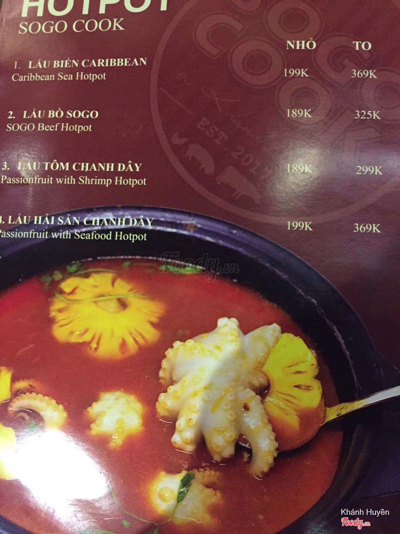 7.8Sogo Cook - Lẩu Hongkong- Không gian: đẹp,xanhhh, mát mẻ, rộng rãi. - Nhân viên: tận tình, đi đến đâu cũng được chào )) - Đồ ăn: mình đi 2 người, gọi 1 set lẩu tôm chanh dây 2 người hết 230k. Vị nước lẩu lạ, chua chua mặn mặn có mùi chanh leo, chắc hợp tuỳ khẩu vị nhưng đối với mình thì là không :( ăn cứ thấy lợ lợ sao á. Đồ nhúng kèm gồm: rau nấm, mì gói, thịt bò, ngô phô mai, mấy viên xiên,tôm và trứng cút(?). Ăn hết set này xong thì no căng bụng nè, nhưng mà lẩu chanh dây này mình khuyên là ăn thử cho biết thôi, chứ ăn lại thì no no no 😂 ngoài ra trong menu còn khá nhiều món khác trông rất ngon, lần sau quay lại sẽ thử 👍 ...Xem thêm