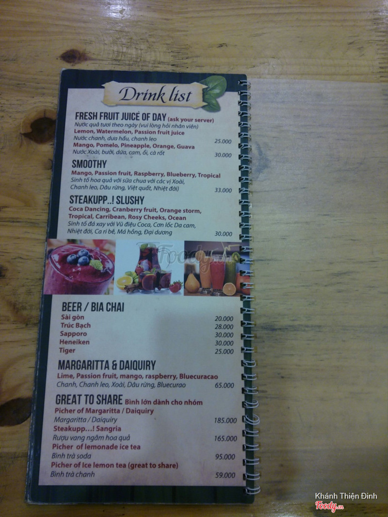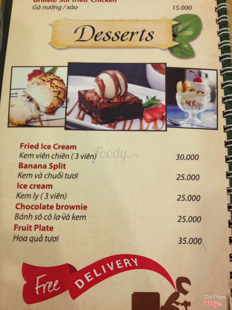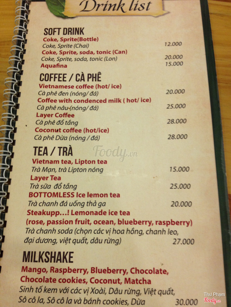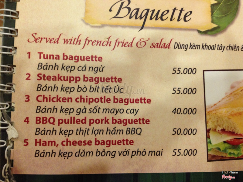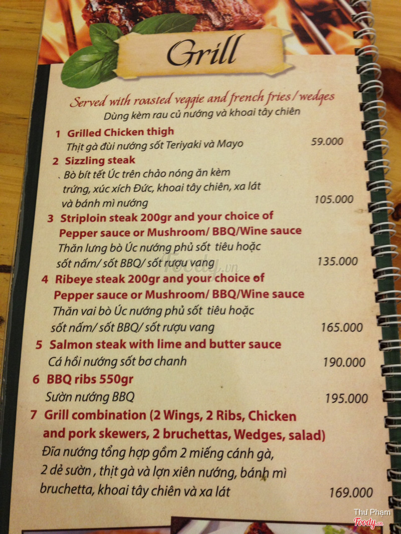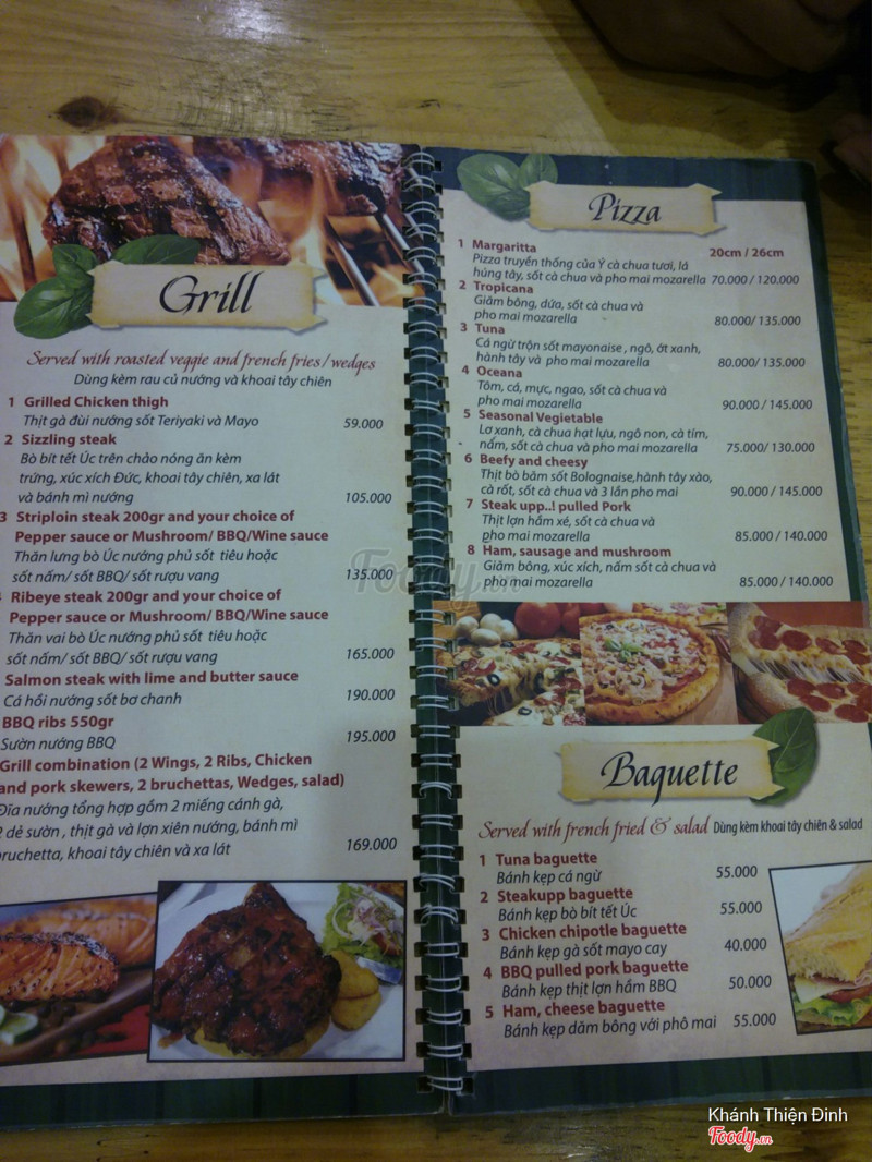 6.4Ăn tàm tạmQuán vắng, không biết có phải mới mở không vì hôm mình ăn có mỗi mình và em mình. Không gian tầng 2 đơn giản nhưng đẹp, vắng khách nên ngồi khá thoải mái. Mình mua voucher Hotdeal nên mới qua đây ăn, có: chảo bít tết, sườn nướng, súp bí ngô và brownie. Cảm nhận là nấu tàm tạm thôi, không ngon lắm, nếu không phạir mua deal thì chắc không nên ăn đâu. Súp bí ngô nấu với kem béo, ngậy. Bít tết nấu kiểu Việt Nam lắm, ít nữa. Sườn nướng thì nhạt chả có vị bbq gì cả. Mình phải chấm với sốt trước đos ăn bít tết hoặc ketchup mới ăn nổi. Suất bé tẹo nên lại phải gọi thêm pizza thì sợ luôn vì đế bánh ăn như bột cũ ý. Mình cũng từng làm pizza ăn rồi nên biết, hic. May mà mua 1 tặng 1 không thì đúng phí tiền. Voucher cuối tuần phụ thu 20k nhé. Brownie có kem ở trên, rưới 1 lớp sô cô la ở trên thì ko hiểu sao nó cứ chua chua cái lớp đó. Brownie chắc bé bằng 3 ngón tay, ăn 2 miếng là hết. Thôi mua voucher nên chỉ được vậy. Chán! Được cái cô ca ko đắt như chỗ khác. ...Xem thêm