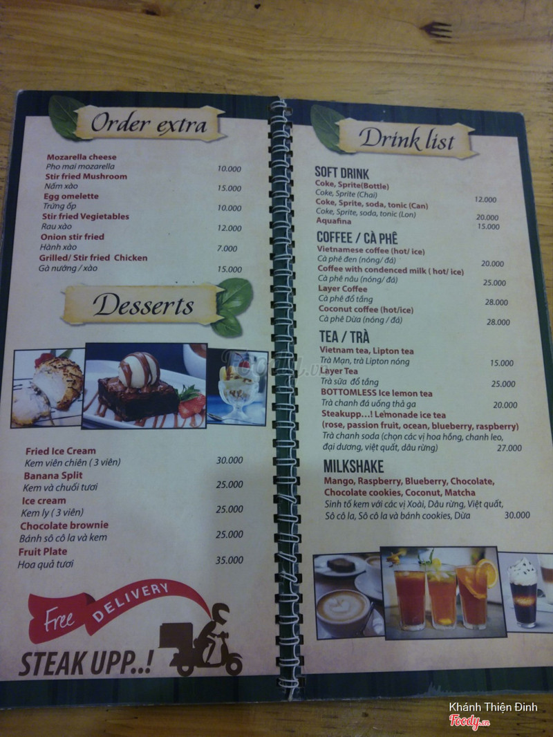 7.0Steak Upp 55 - Pizza & Mỳ ÝQuán này lạ ghê, cứ đổi đi đổi lại chủ, hình như cũng mới đổi tiếp hay sao ý mà thấy review cũ của các bạn biến mất hết rồi 😐 nhìn lại ảnh thì thấy quán mới chẳng khác gì quán cũ luôn. Quán ở vị trí khá đẹp, view nhìn thẳng ra hồ Tây. Không gian hơi hẹp, có 2 tầng, trang trí đơn giản lắm, được mỗi cái chỗ trên tầng 2 mà ngồi hướng ra cửa sổ, đèn led lắp xung quanh lung linh, rất lãng mạn. Quán vắng lắm, cả quán tối đó có mình mình, nên ngồi khá thoải mái. Về đồ ăn thì mình mới chỉ ăn thử bò bít tết của quán thôi. Chẳng nhớ đã gọi loại gì nữa, nhưng bít tết ở đây chế biến như kiểu Việt Nam, đặt trên chảo nóng, ăn kèm có cả trứng ốp la và xúc xích. Sốt tiêu đen khá đậm đà, thịt bò mềm, khoai ngon nhưng hơi ít. Giá cả cũng rất phải chăng nhé. ...Xem thêm
