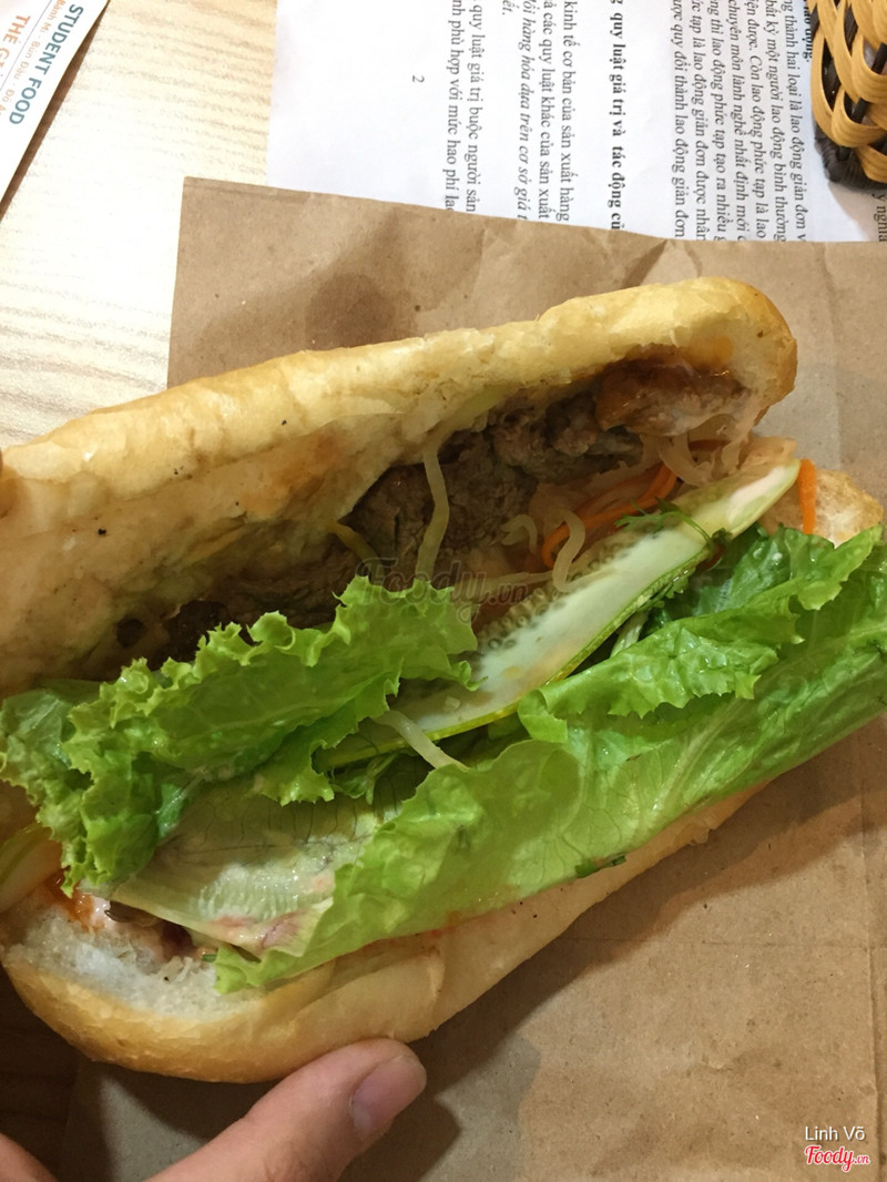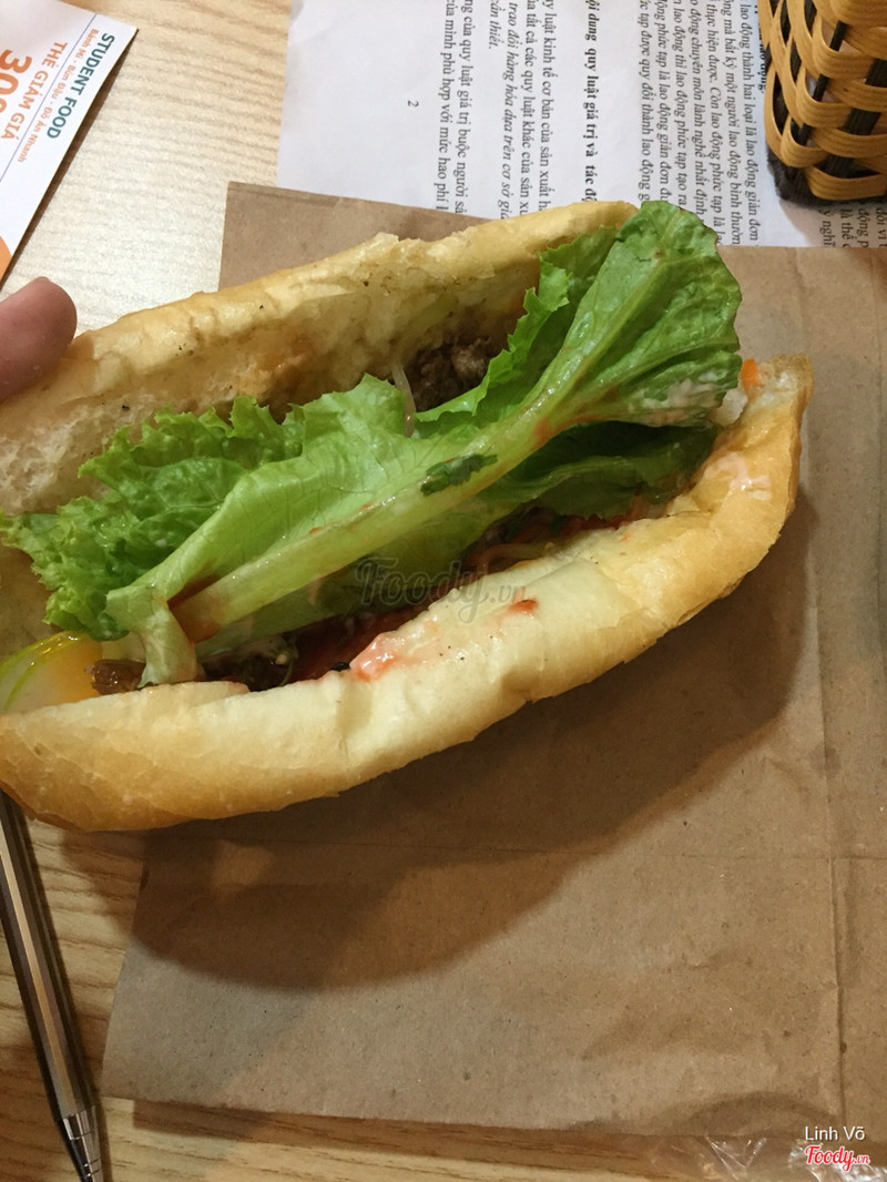 3.4BÁNH KHÔNG TƯƠNG XỨNG VỚI GIÁMình có đặt hai bánh mì bò tiêu và sau đây là nhận xét của mình: - Bao bì: tạm được, hai bánh mì đặt trong một túi giấy, nếu muốn lấy ra ăn thì phải cầm tay - Chất lượng: bánh mì rất khô, nhân thì ít mà giá tận 35k/ cái ? Bánh mì khi đến cũng không nóng, mặc dù mình phải chờ hơn 30p. Bò dai, được ít như trong hình, chắc được 4 miếng nhỏ kèm thêm 2 lát rau. > Chấm: 2/10 Chắc chắn mình sẽ không bao giờ quay lại để ăn vì giá quá đắt cho một chiếc bánh ít nhân, nguội ngắt và có thể nói là khá dở tệ. ...Xem thêm