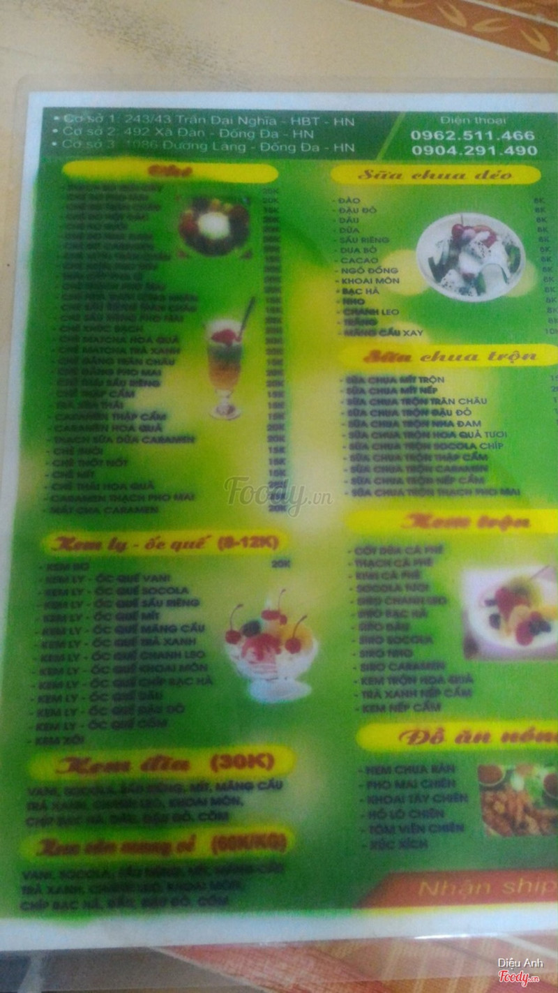 6.6Sữa Chua Ông Già Tóc Bạc - Láng ThượngSữa chua dẻo không phải là sữa chua dẻo như mình nghĩ mà là sữa chua đánh đá như hàng sữa chua hoa quả ở Kim Mã Thượng ý, cũng không phải là chán đâu nhưng nó không phải sữa chua dẻo... Chè khúc bạch... cũng không phải chè khúc bạch nốt mà là 1 cục thạch ăn với nước chè ngọt, nhãn khô, dừa khô thôi... Kem bơ, thực ra là kem sữa dừa dùng kèm với một ít bơ xay xung quanh... hừm thực ra kem thì cũng ngon đấy, béo béo vị dừa, ngậy, không quá ngọt... Tóm lại đừng nghĩ rằng bạn sẽ gặp các món quen thuộc ở đây mà hãy tưởng tượng nó khác đi, ờ thì cũng không phải là các món nó chán mà chỉ khác những món thường gặp thôi... Chú chủ quán nhiệt tình thân thiện nhưng em bé con gái chú nói chuyện hơi cộc lốc nha ~~ ...Xem thêm