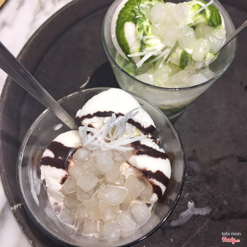 7.8Ngon, lạMình gọi sc mít, sc thường, topping trân châu, chuối khô. Sc mít 35k, thường 20k topping 5k/ea. Sc như sc dẻo nhưng mềm hơn. Lạ cái là trân châu để riêng với cốt dừa trong cốc. Hôm mình ăn ko biết có phải trâu châu mới nấu ko nên hơi nóng. Đổ vào bị tan sc nên hơi mất ngon 1 tí. Đc cái trân châu mềm và nhiều dã man. Mình nghĩ 2 cốc 1 trân châu là vừa ý. Quán có thanh toán bằng vnpay đc giảm giá bao nhiêu % mình ko nhớ. Mà đại để như trên + hạt hết có 6 mấy k. Cũng rẻ ngồi hẹn hò bạn bè nhâm nhi đc. ...Xem thêm