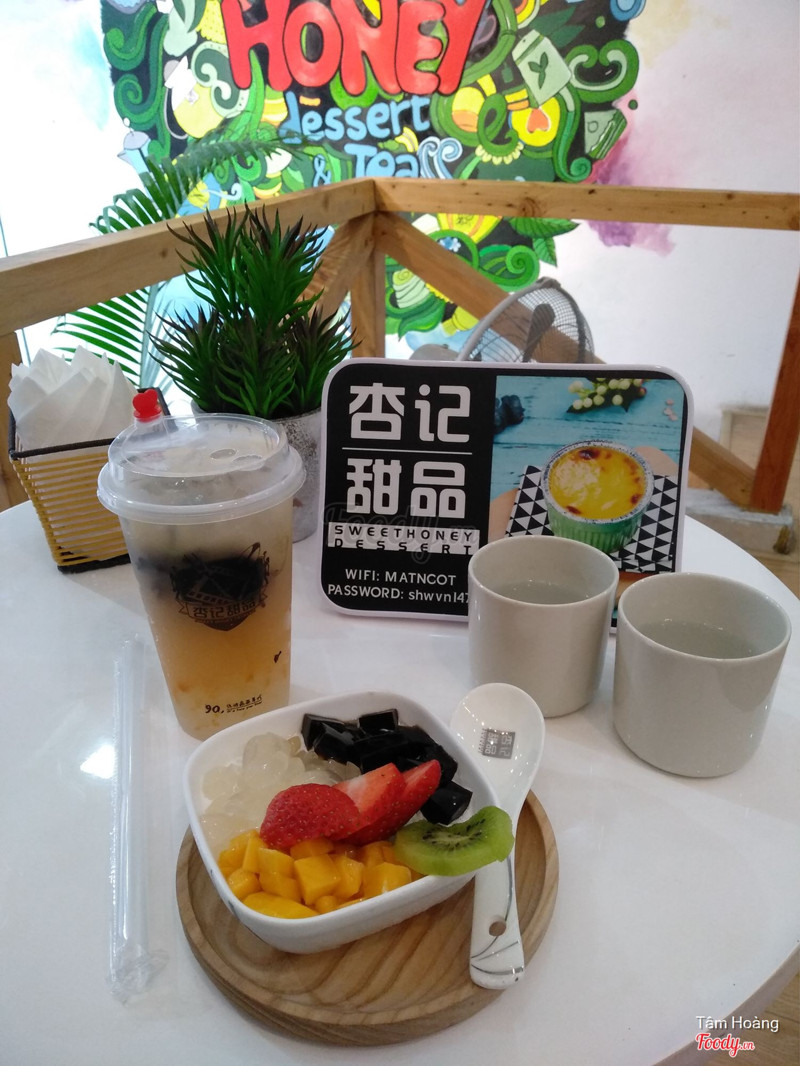 8.4Sweethoney Dessert - Đồ Ngọt HongKongEo ơi ngon vs ko gian cưng lắm luôn í 😍😍 Cưng vchg lunn 😘😘 ❣️Tất cả mọi thứ đều ổn vô cùng. Bọn mình ord 1 bạch tuyết trân châu đen và 2 thiên đường nhiệt đới. Ăn cực lạ miệng kiểu giống đá bào sữa, thiên đường nhiệt đới thì có hoa quả như xoài, dâu, kiwi, hoa quả tươi xoài rất ngon nhưng dâu vs kiwi thì hơi chua, có thêm chút thạch sương sáo và trân châu. Ăn lúc đầu khá buốt nhưng càng ăn càng thấy bon mồm 😂😂 bạch tuyết trân châu đen thì có nho vs nong nhãn thì phải, trân châu, hạt chia và xoài nữa ăn cũng khá là bon mồm. Nhưng mình vẫn ưng thiên đường nhiệt đới hơn vì có hoa quả tươi lun í. Mình thích nh hoa quả hihiiii Điểm cộng là nhân viên cực ngoann, bọn mình vào thì tươi cười chào, phục vụ tận tình, ra về thì cũng cúi chào hẳn luôn ấy. Nhưng điều lạ là quán vắng tanh hixx. Có mỗi 3 bọn mình ở quán lên t2 ngồi mà nhân viên vẫn ok mở riêng điều hoà cho chúng mình luôn mà nch rất lễ phép. Ưng cực kì. Chúng bạn còn đòi mai đi ăn tiếp kia kìaaaa 😂😂 📌Giá: 42k 📍147 Trung Kính ...Xem thêm